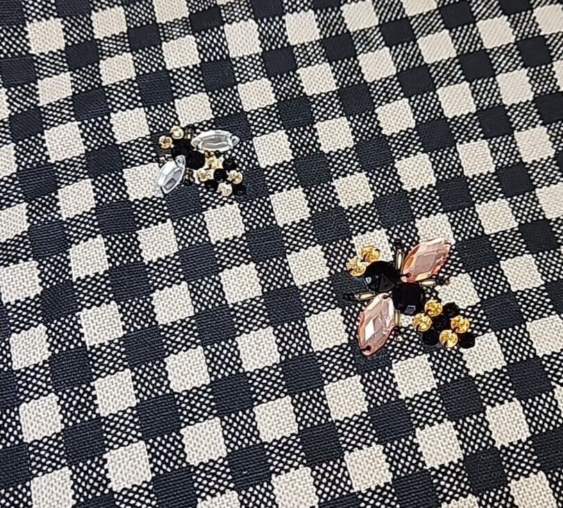 Description: Gorgeous pillow cover by Pottery Barn. Black and white check "Norton" with stunning rhinestone bees at the top corner. Zip closure. Please read photos of tags for fabric content and year manufactured. NO INSERT INCLUDED. ***I found a huge lot of discontinued Pottery Barn pillow covers that look to be new without tags which are listed in my eBay store. Please contact me if you'd like to combine shipping with any of the others. Size: 18x18, see photos for actual measurements. Condition: "Looks" to be new without tags - no flaws or wear, tagging is crisp. A little bit of lint on the back shows due to the color. * PHOTOS - Please review all photos carefully before bidding, buying or making an offer. * CONDITION - I find most of my items at resale stores or estate sales - unless otherwise noted, these are in AS FOUND condition. * SHIPPING: I try my best to ship all items by the same or next business day, even though my Ebay settings are longer. If applicable, CHOOSE the slower/cheaper shipping option or Priority for faster delivery. Visit my Ebay store for more beautiful items. Thank you!
