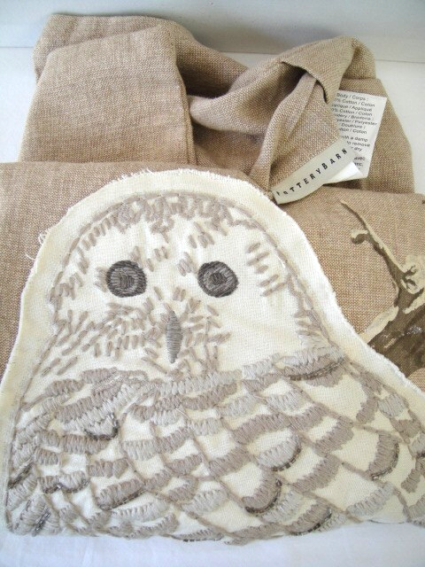 Embrace the cozy and whimsical charm of the Pottery Barn One 24x24 Snowy Owl Square Pillow Sham. This charming beige sham, adorned with an enchanting owl pattern, brings a touch of nature's serenity into your bedroom. Crafted from 100% cotton, it promises both comfort and durability, creating an ideal setting for a restful night's sleep. The sham's square shape and 24x24 size ensure a perfect fit for your pillow, while the button closure adds a classic, understated detail. Whether you're looking to spruce up your bedding or add a decorative accent to your room, this Pottery Barn pillow sham melds seamlessly into any space. Please Ask Any Questions USPS Priority Mail Flat Rate Bubble Mailer Ship Thanks