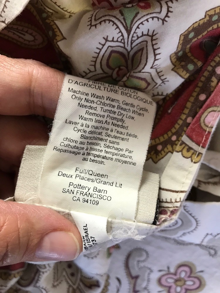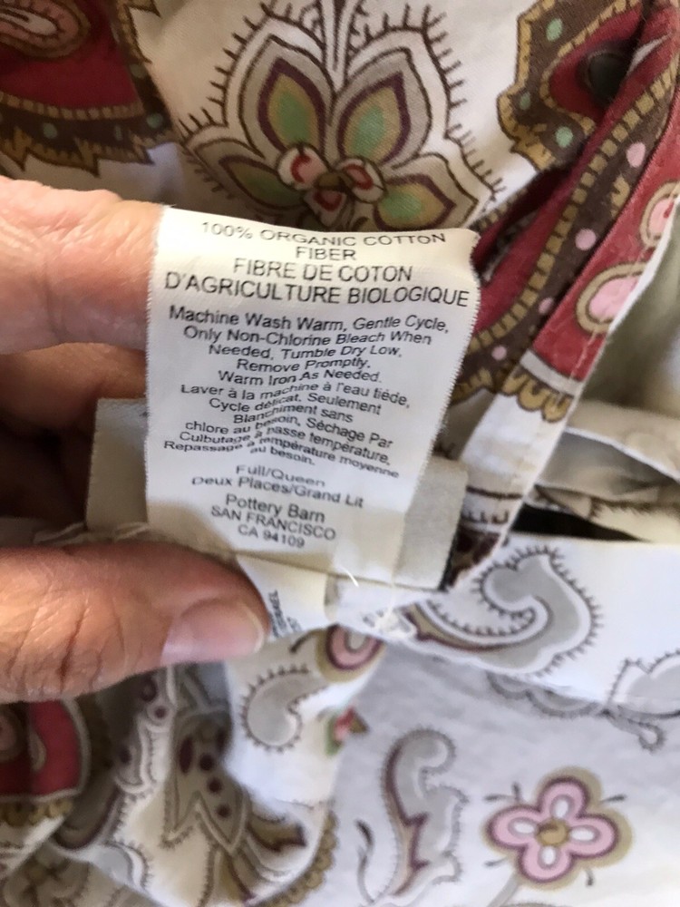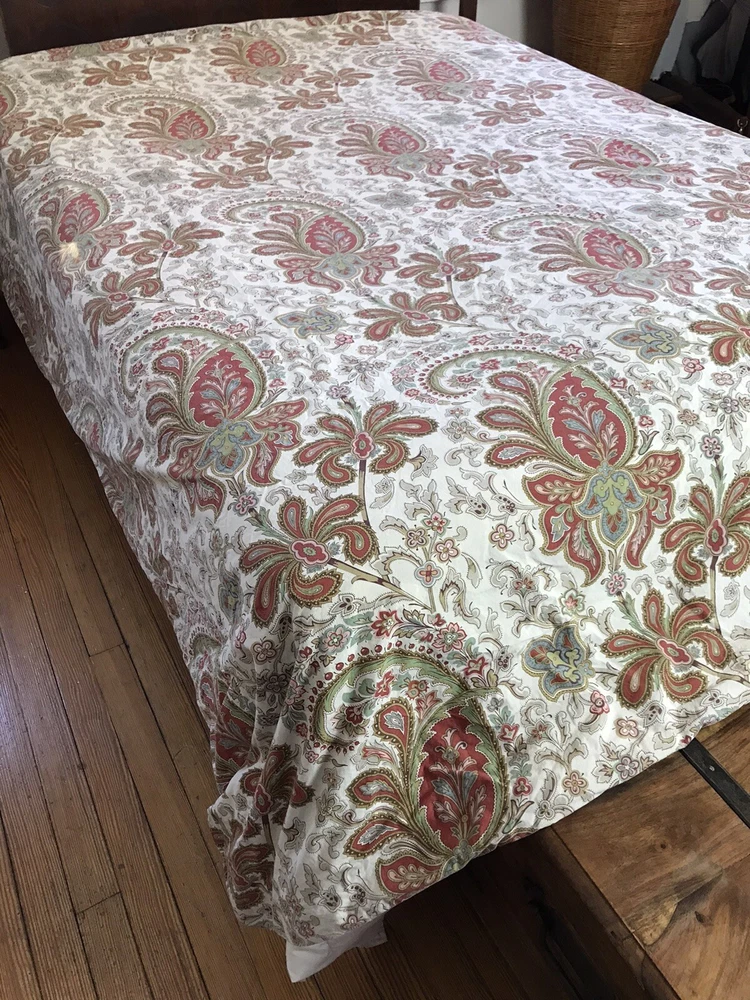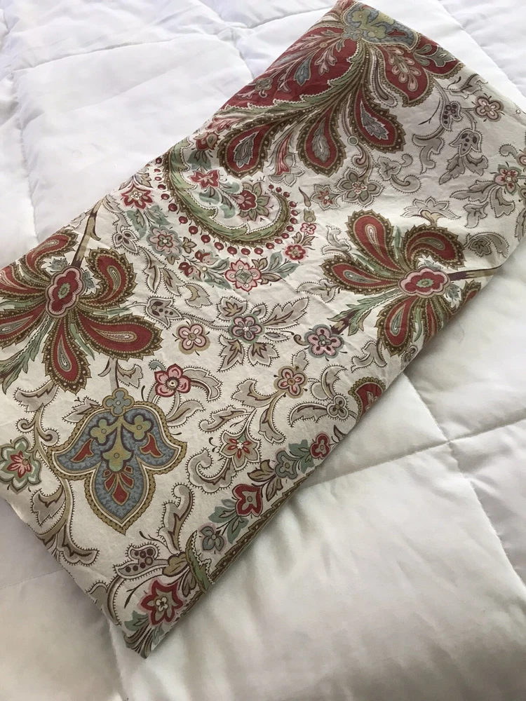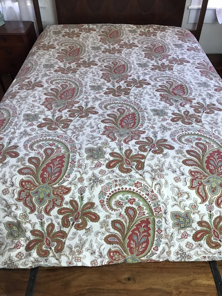 Beautiful! Pottery Barn CHARLIE full/queen duvet cover, button closure. Beige/off white background with red paisley pattern. Very good preowned condition, light/minimal wear. As with most vintage and preowned items, some wear may be visible. All items sold as is, so please review pictures carefully and ask questions if not sure. Local pick up available.