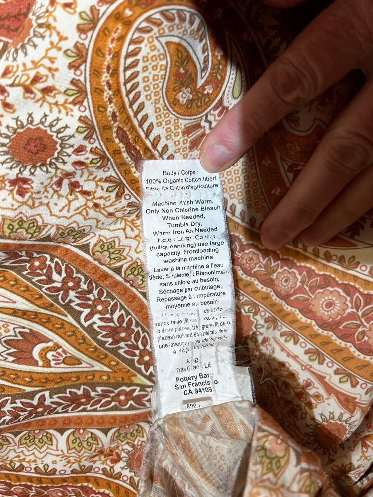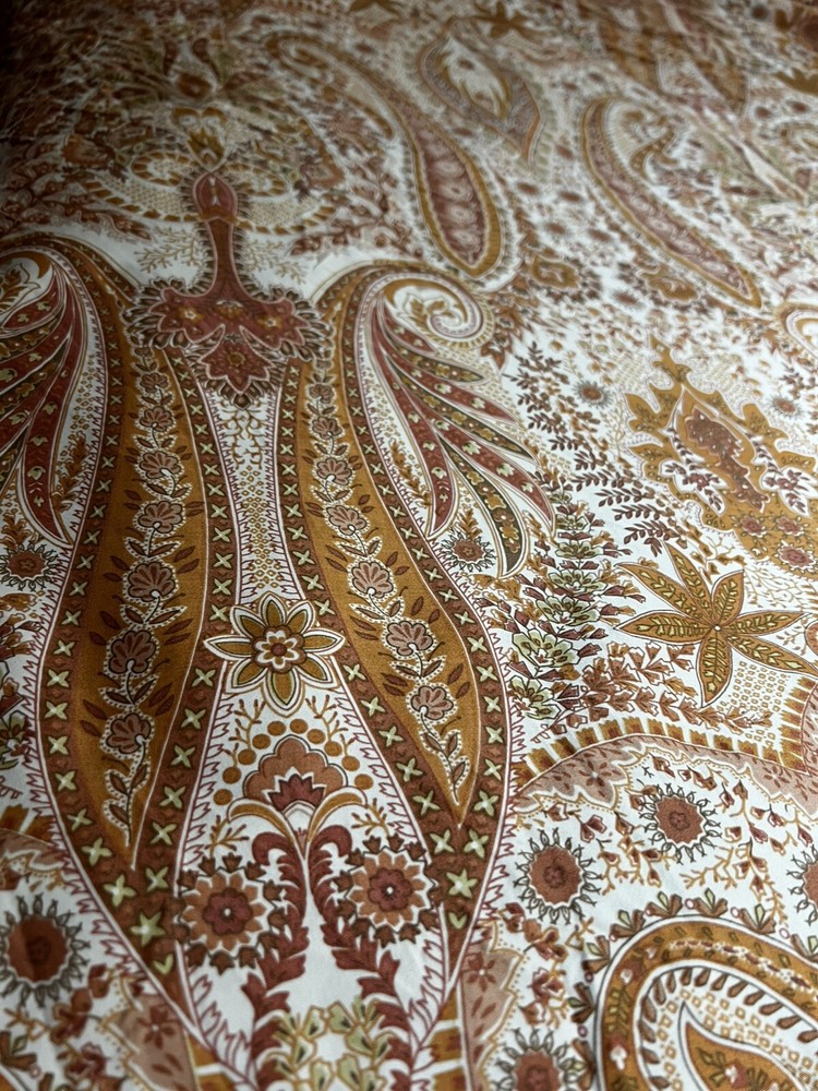 This duvet cover is a dream—soft, high-quality organic cotton with a beautiful terracotta paisley print on both sides. It’s in perfect condition, just as described, and the seller ships carefully from a clean home. It adds warmth and elegance to any bedroom!