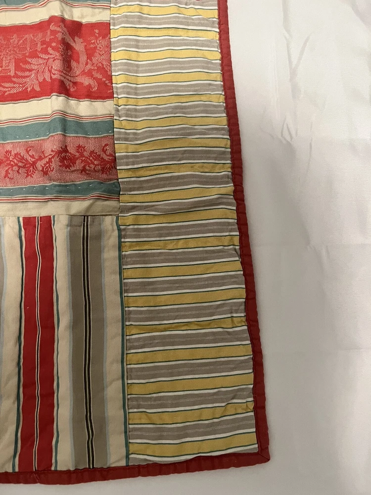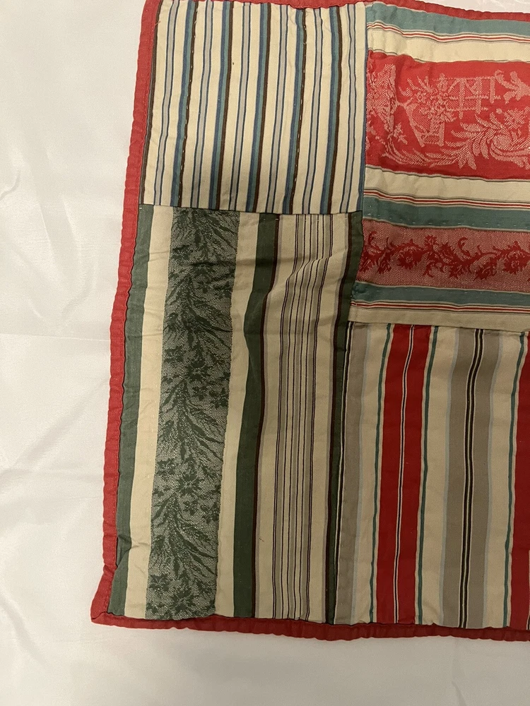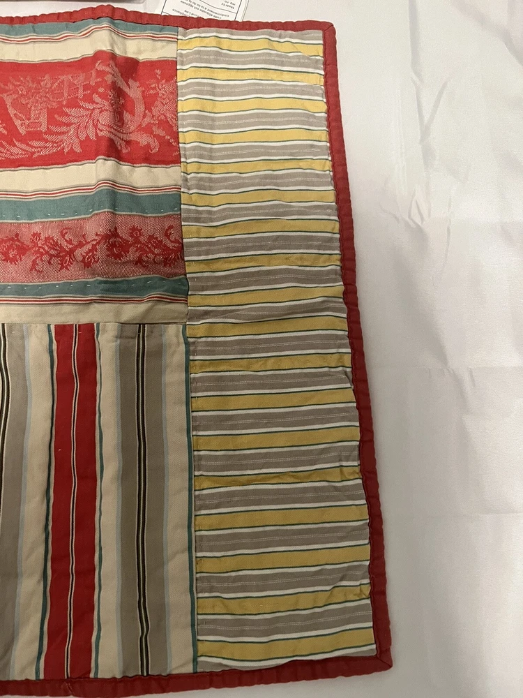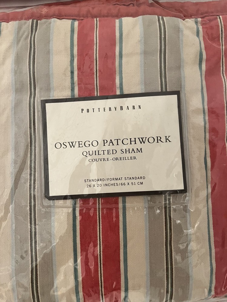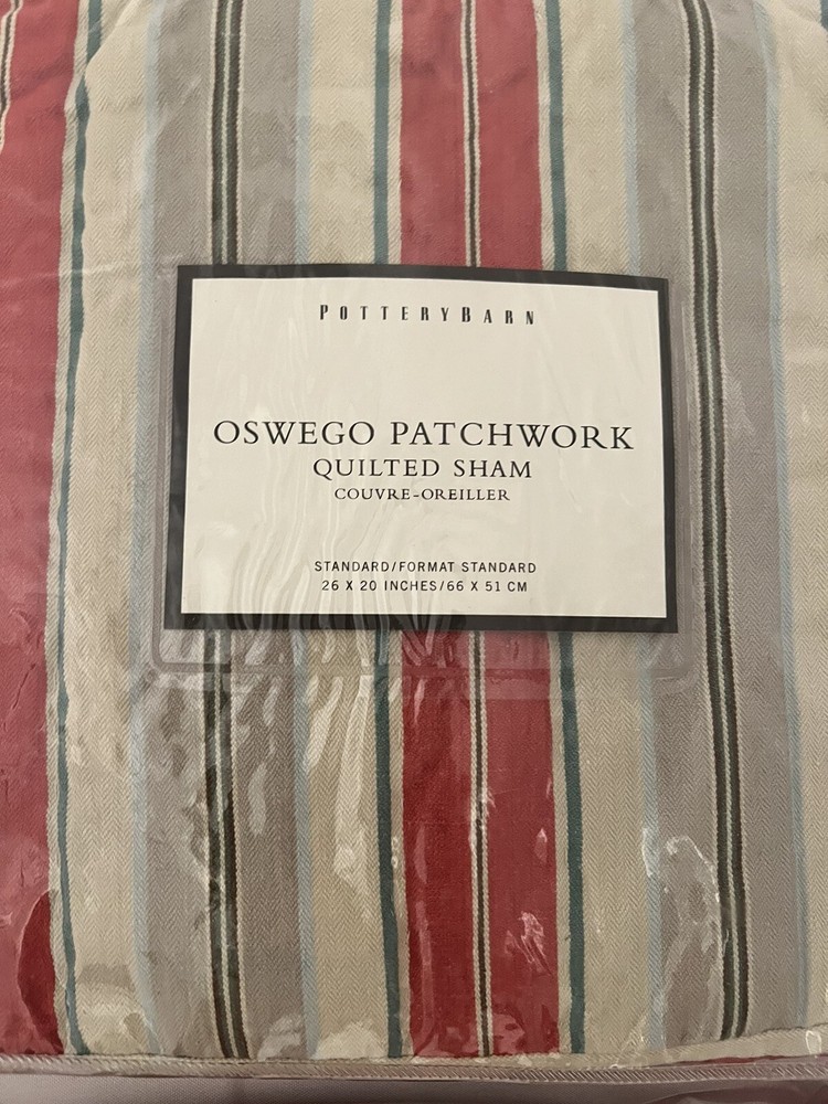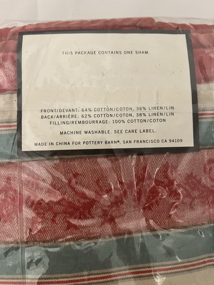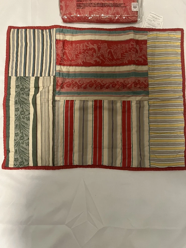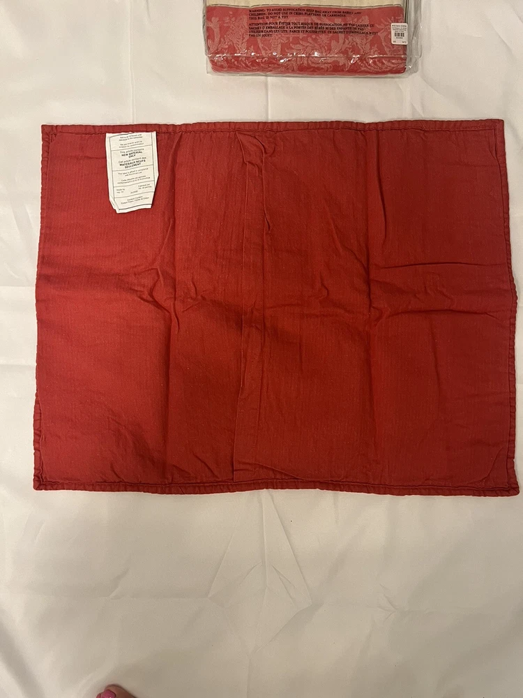 Item has never been used but package has been opened. Standard size 26 x 20. See pics for full display and design. Striped pattern on front and solid red on back....