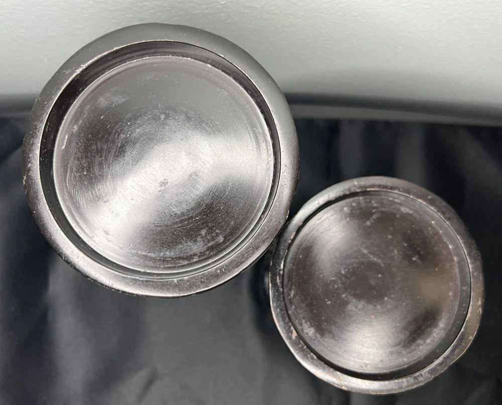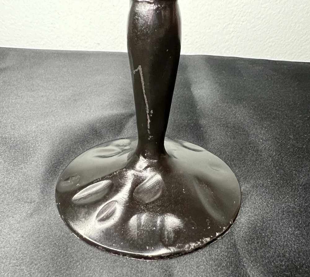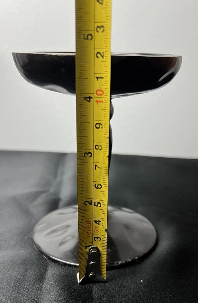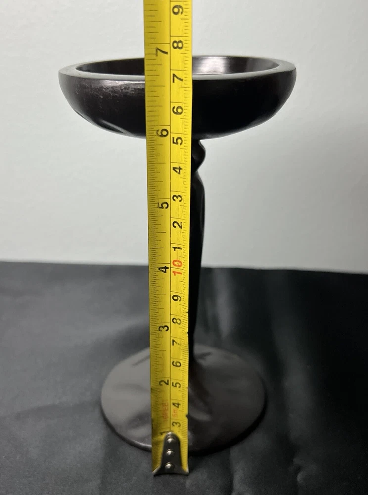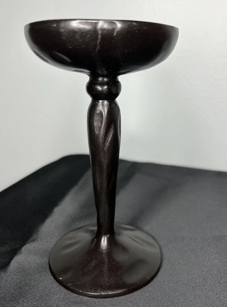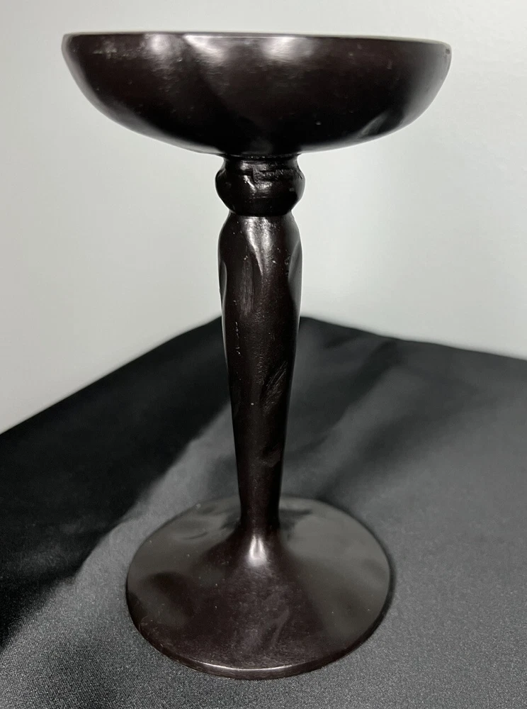 Pottery Barn Outlet Dark Brown Pillar Candle Holders Set Pair 4.5” & 6.5” India. Please review the listing photos as they are part of the item description; holders are pre-owned and have multiple marks, scratches, scuffs, and general wear due to use and age as shown. Holders measure approximately 4.5” and 6.5” height, 3.25” bottom base width, and 3.5” top base width. Set is from Pottery Barn Outlet. Made in India. Nice dark brown color. The perfect pillar candle holder pair for any spot in your home!