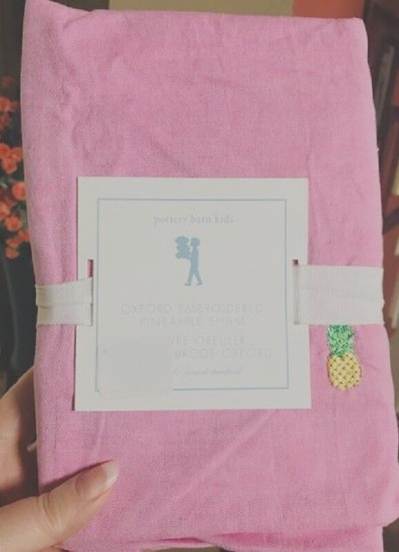 POTTERY BARN KIDS OXFORD PINEAPPLE DUVET This duvet cover is made of 100% cotton exclusive of the decoration. This duvet cover is machine washable. The background color is a light pale pink color. The embroidered pineapple are all over the duvet cover. The pattern is only on the one side. Made from 100% organic cotton percale digitally printed butterfly designs created by our own artists. Organic cotton is grown without the use of toxic and persistent pesticides and synthetic fertilizers. Duvet cover is finished with interior corner ties and a button closure to keep the duvet in place. Machine wash. Imported. Auction is for QUEEN Duvet cover, and TWO STANDARD Shams. Items are BRAND NEW in ORIGINAL PACKAGING. A d d i T i O N a l P h o T O s A v a i L a B Le U p O n R e Q u e S T PURCHASED DIRECTLY FROM POTTERY BARN KIDS . AUTHENTIC