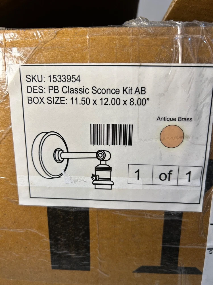 Brand New Open Box Pottery Barn PB Classic Sconce Kit Single Antique Finish Pottery Barn Item #1533954 In the original box and packaging Made in India Item is new in box, see all photos Approximate Measurements: 8"L. and arm is 6" L. 6" H. If you have any questions, please send me a message. Thank you for viewing!