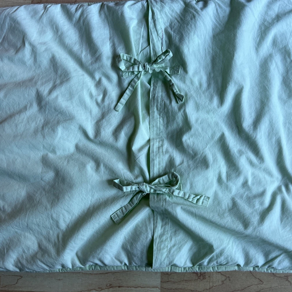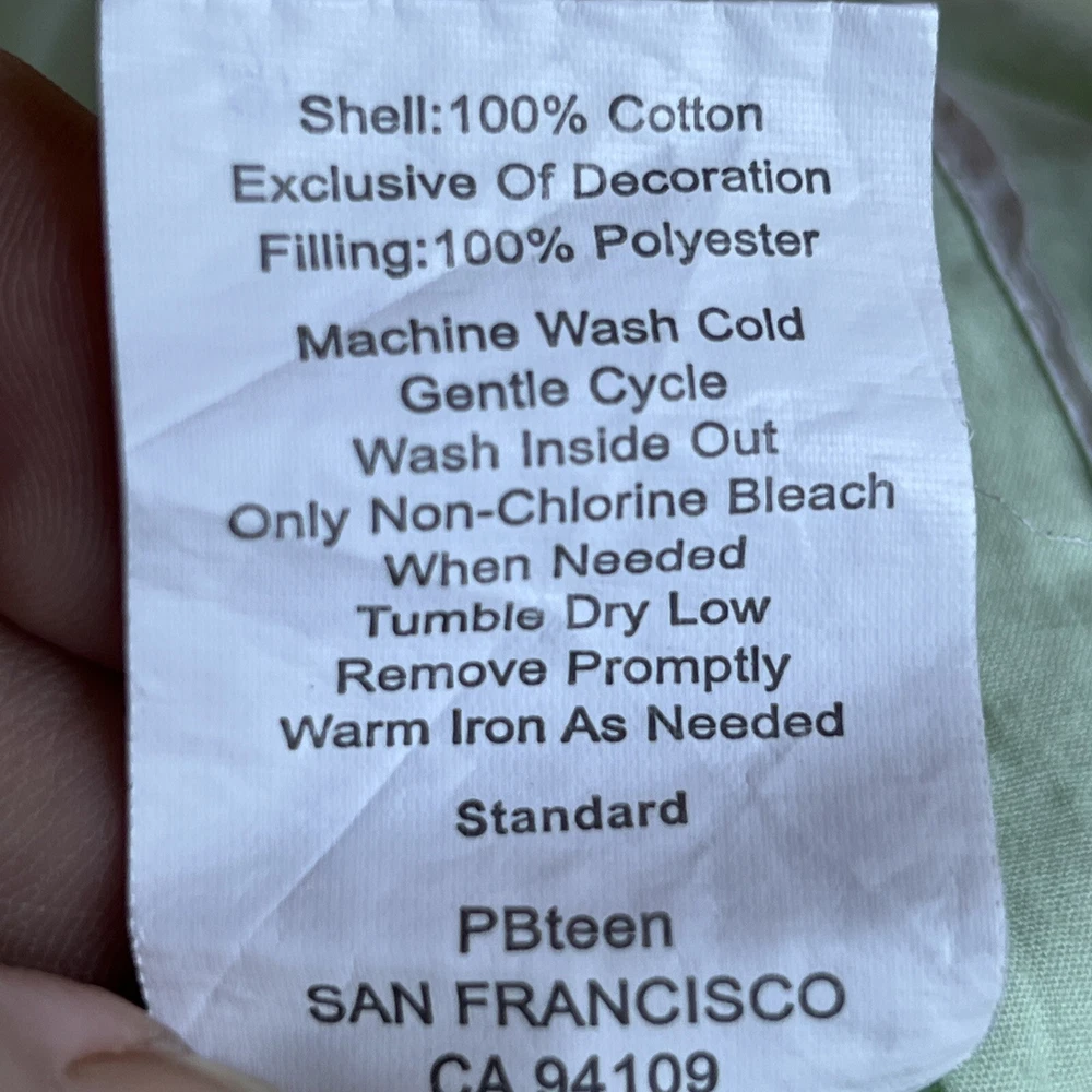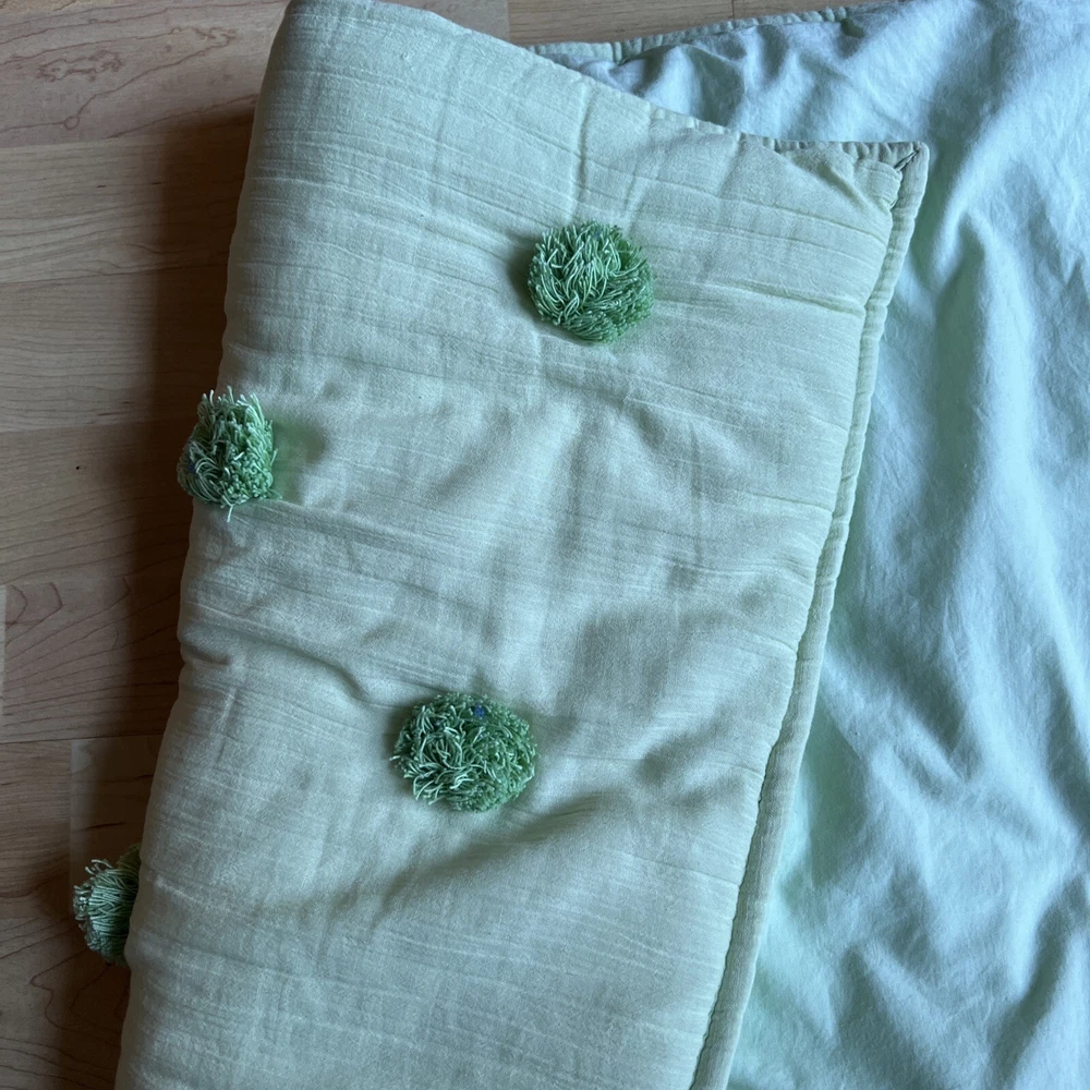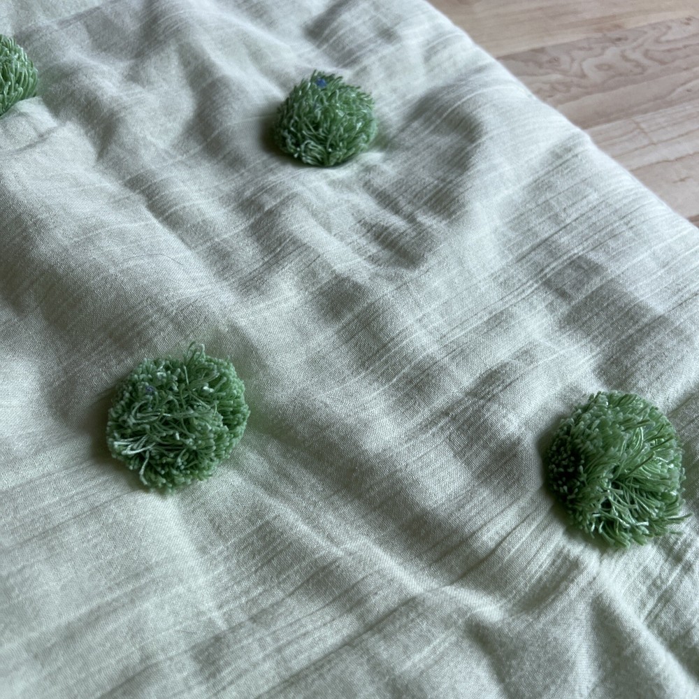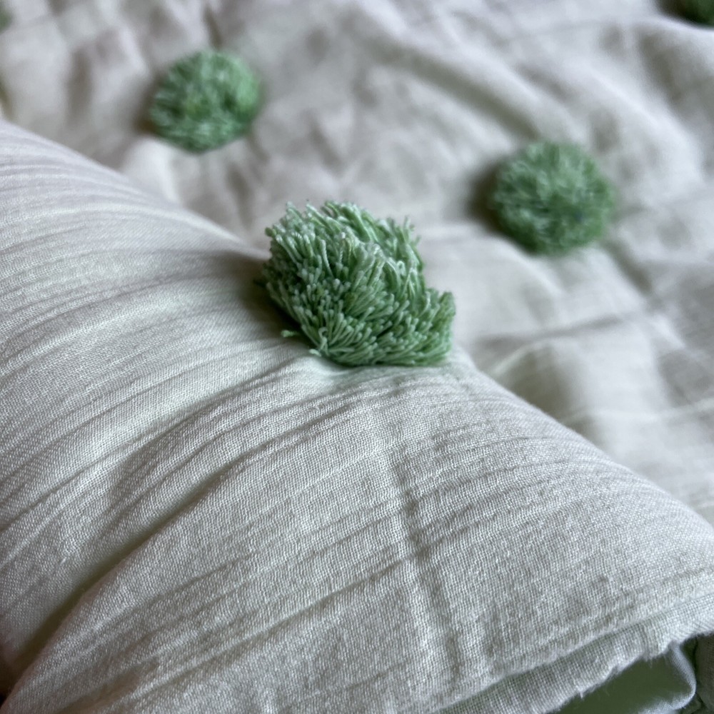 Pottery Barn Teen crinkle pompom standard pillow sham Light green Tie back Tufted/quilted front...