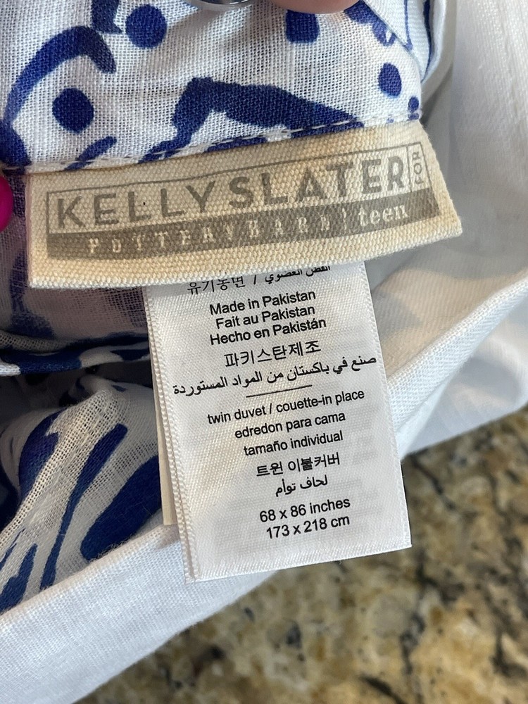 Pottery Barn PB Teen Kelly Slater Ocean Blue Floral Duvet Cover TWIN *NEW*.
