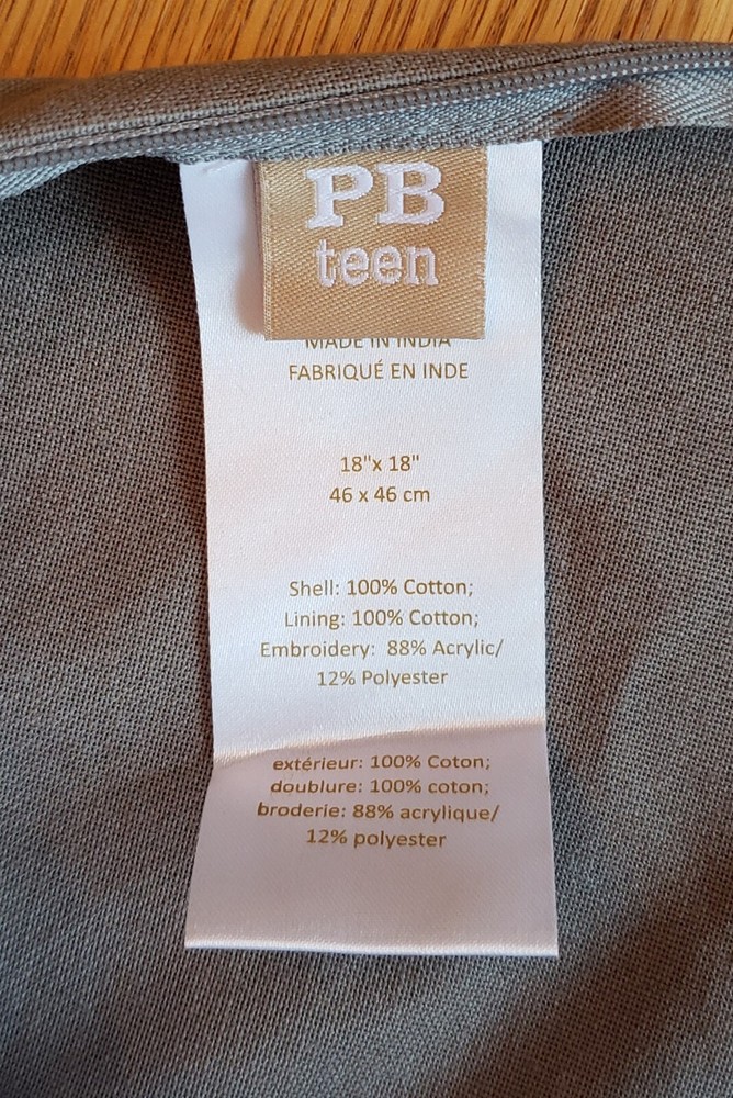 Pottery Barn PB Teen London Embroidered Zip Pillow Sham 18"x18" This is new condition never used and comes from a smoke-free home...