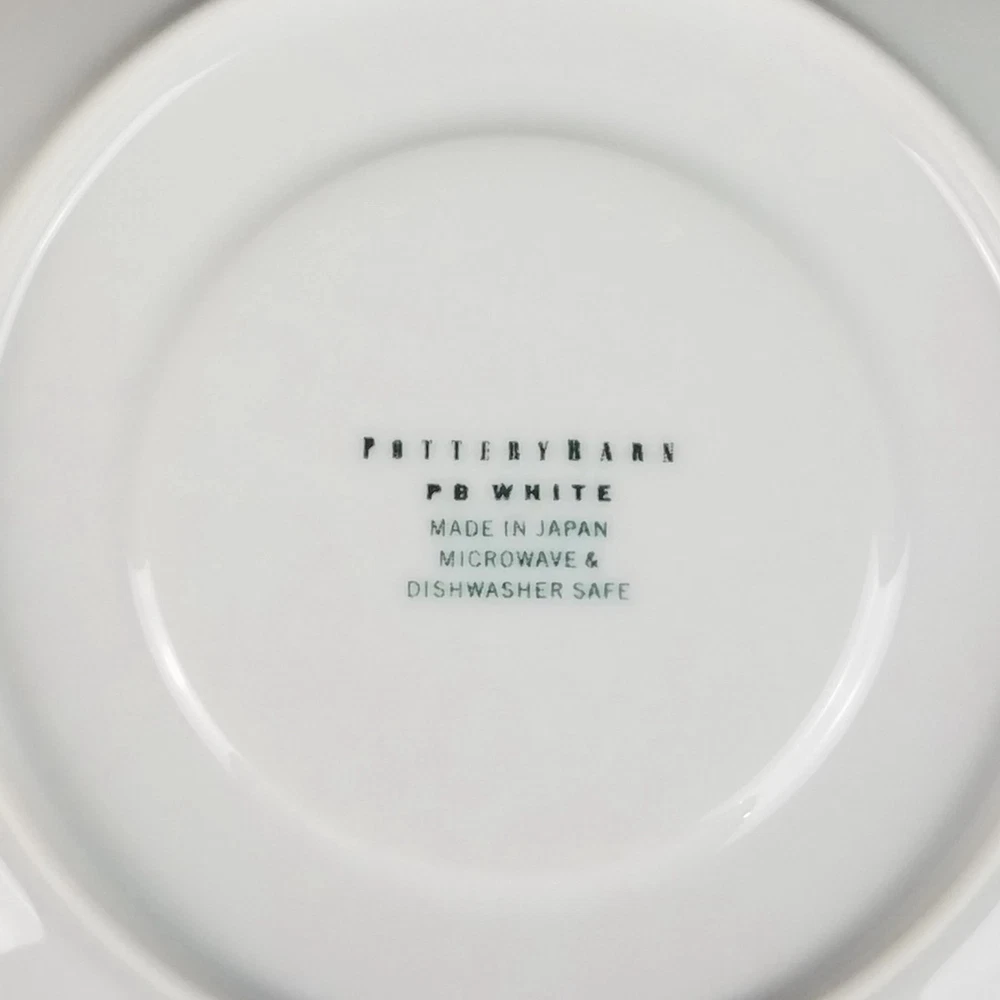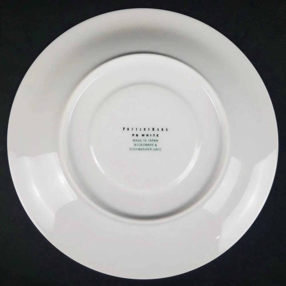 Pottery Barn PB WHITE Saucer for Footed Cup Japan All White, Non-decorated Rim, Smooth, No Trim Discontinued Excellent Condition Porcelain Microwave and Dishwasher Safe Made in Japan Width: 6 5/8 in Weight: 0.44375 lb Larry’s Basement SKU: GN10427