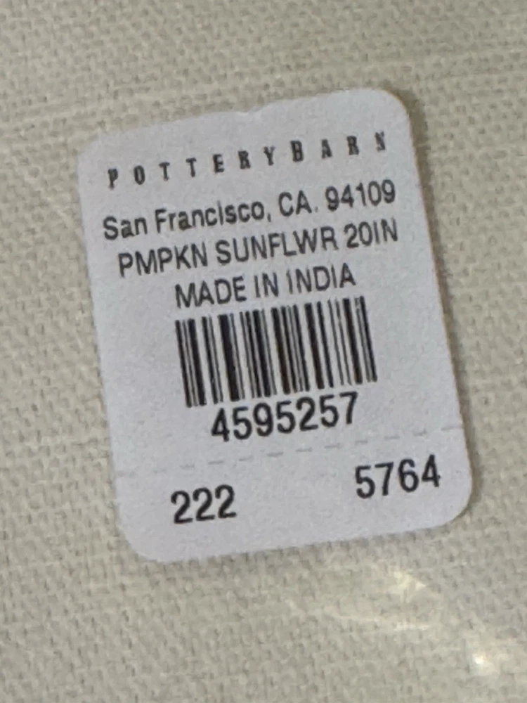 Pottery Barn PUMPKIN SUNFLOWER Embroidered Pillow Cover NWT 20" Square 18" Zipper Zipper closure Made of 100% cotton single slub Reverses to solid ecru If for any reason there is an issue, please contact me before leaving feedback, my goal for you is 100% satisfaction!!! Return Information - Purchase of the item indicates the buyer has read the return information and agrees to the terms. The item must be in new condition (exact condition) in which it was received - unused, unaltered with no damage or signs of use and complete with original tag. Items that are free shipping, the shipping cost will be deducted from the refund. Original shipping fees are nonrefundable. Buyer pays return shipping. Please refer to eBay return policy for additional information.
