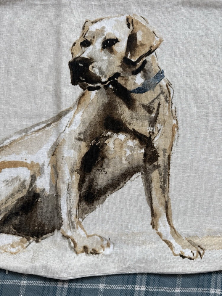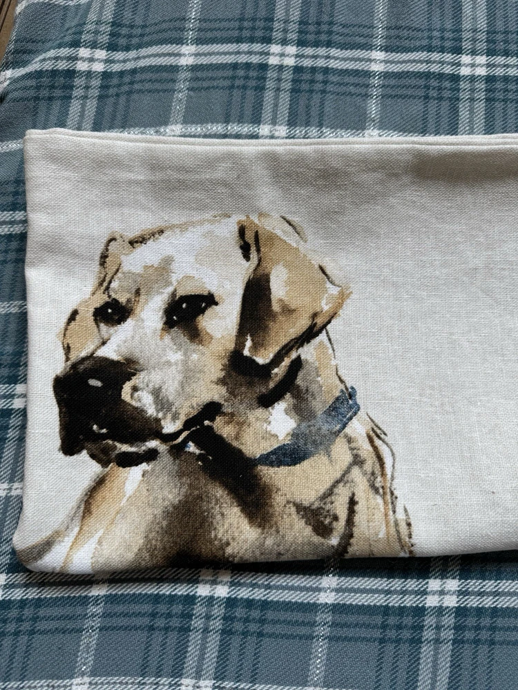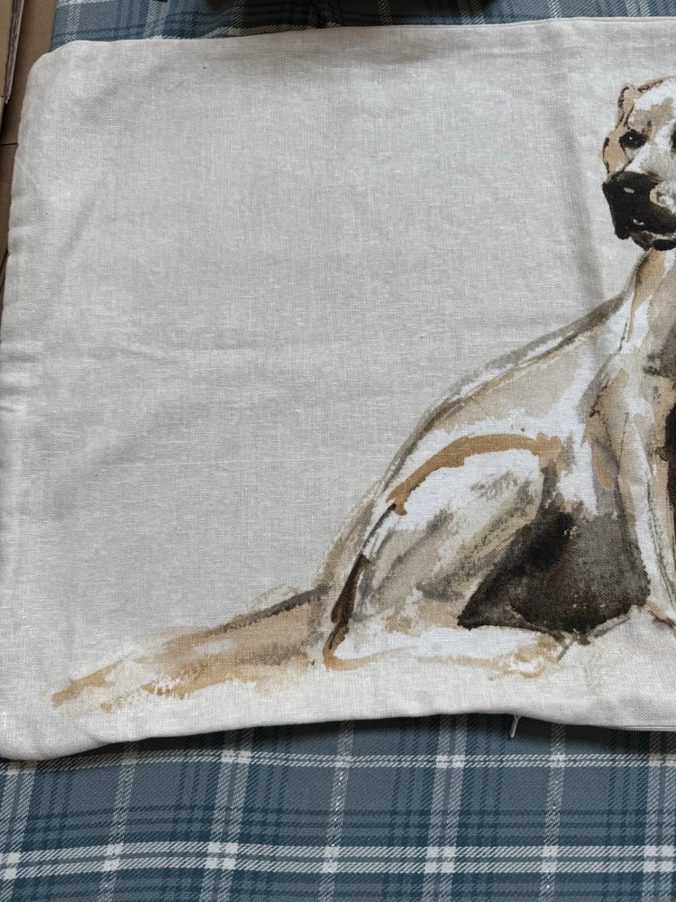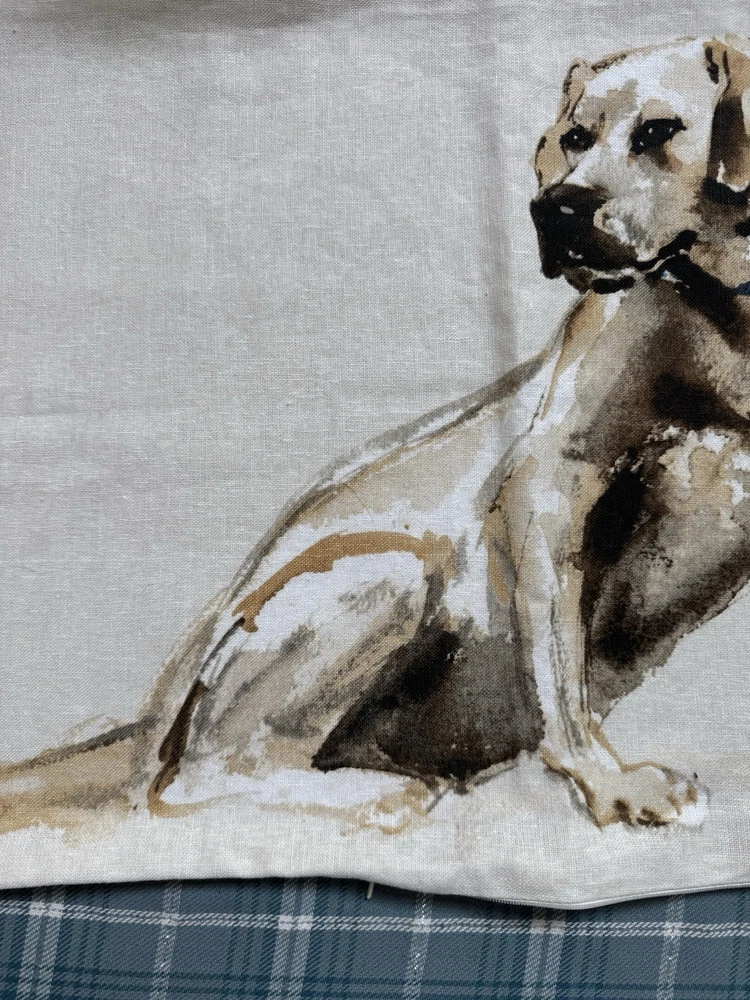 This Pottery Barn Painted Labrador Retriever Dog Pillow Cover features a charming design of a Labrador Retriever dog in a cream color. Made from a comfortable cotton linen blend, this rectangular pillow cover measures 16”x26” and is perfect for adding a touch of canine love to your living room, bedroom, or guestroom. The zip closure makes it easy to update your decor with this adorable painted dog theme. Please see all photos for details!