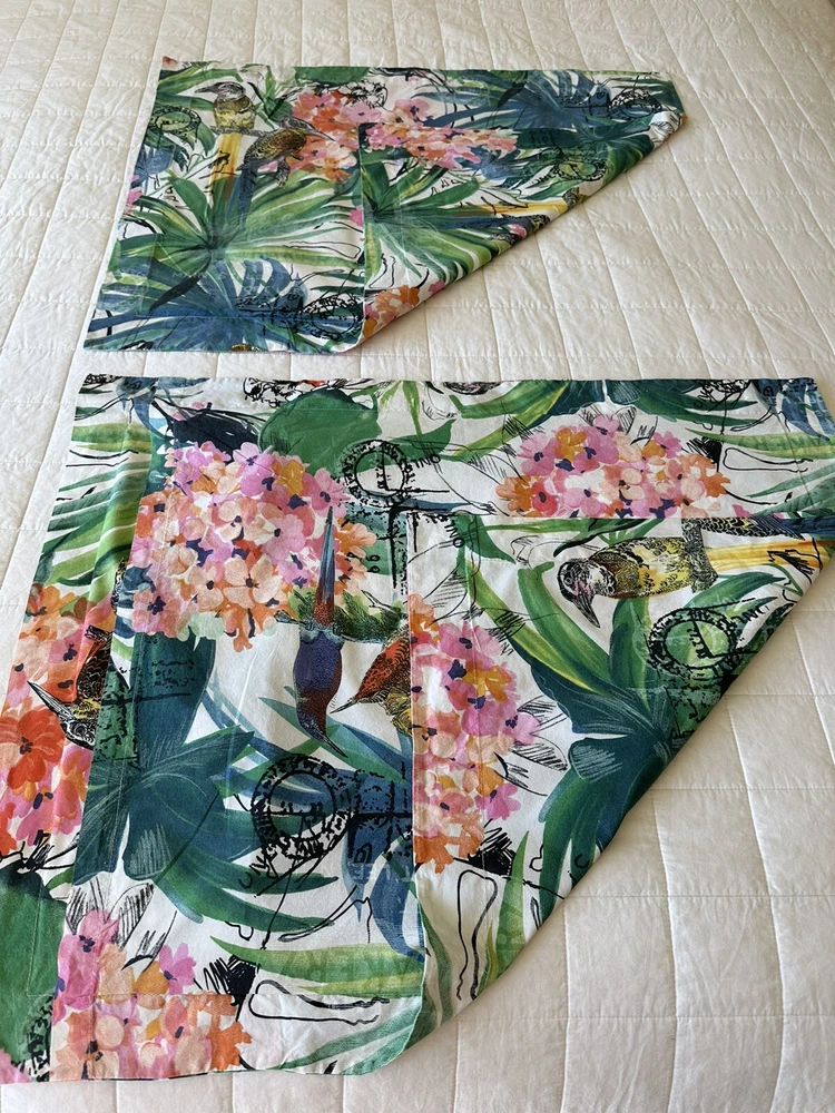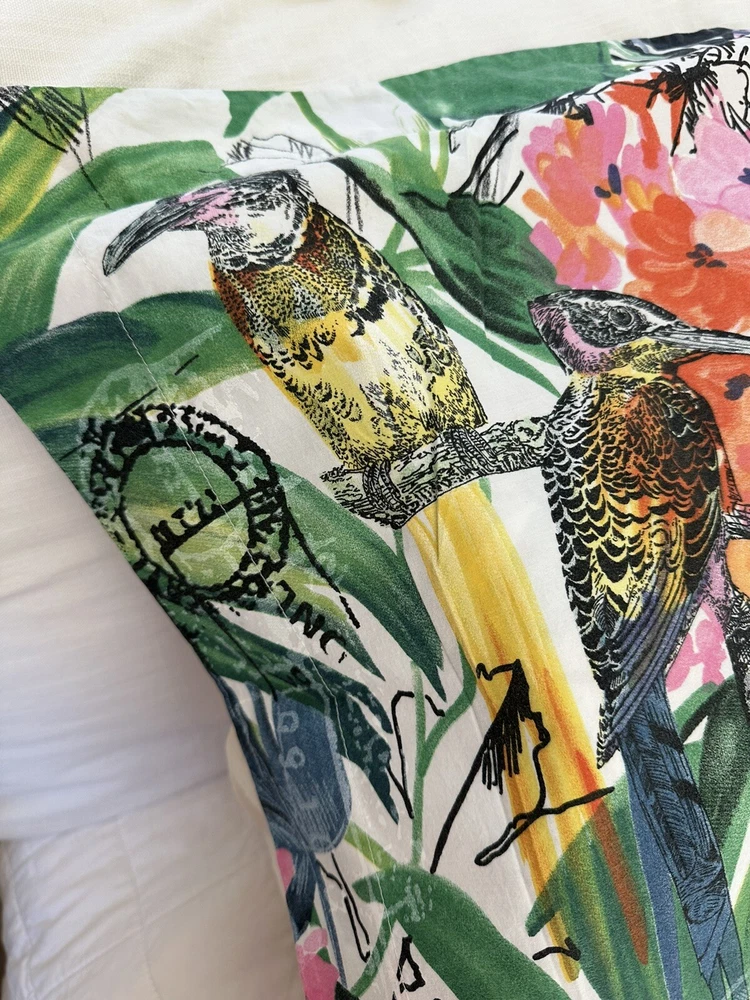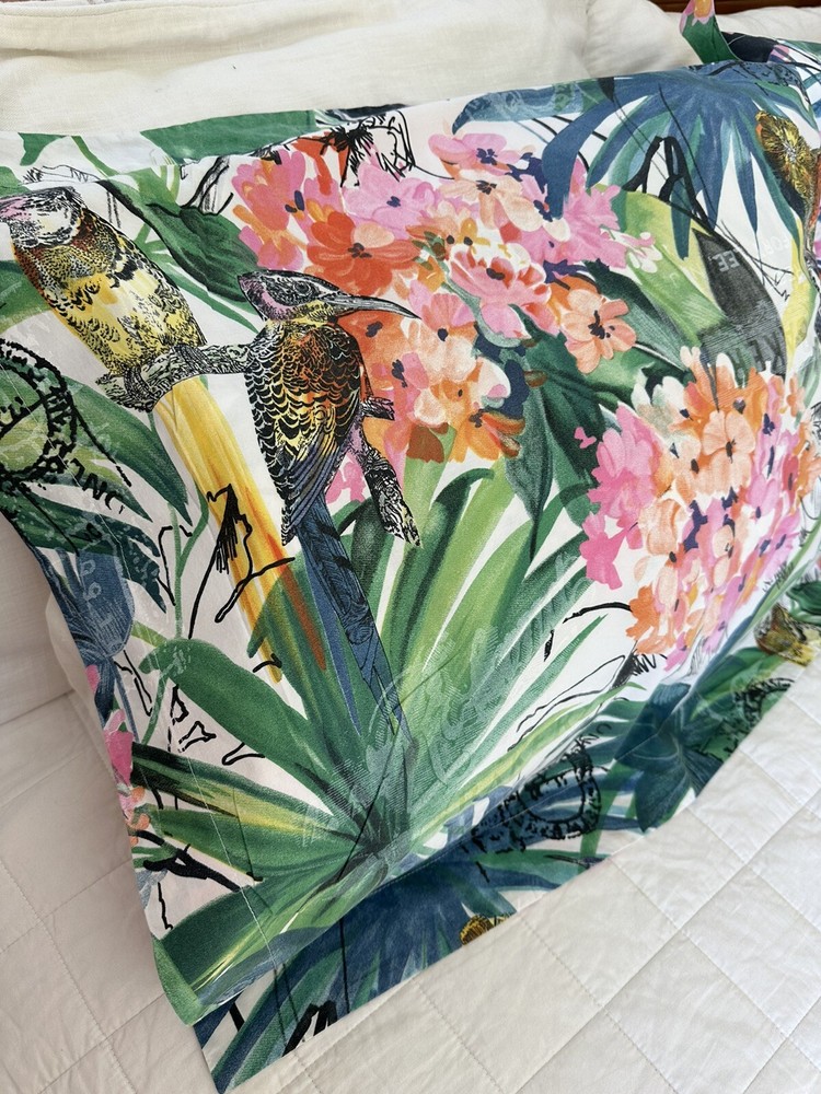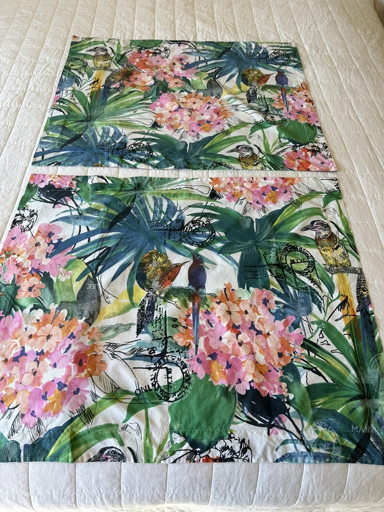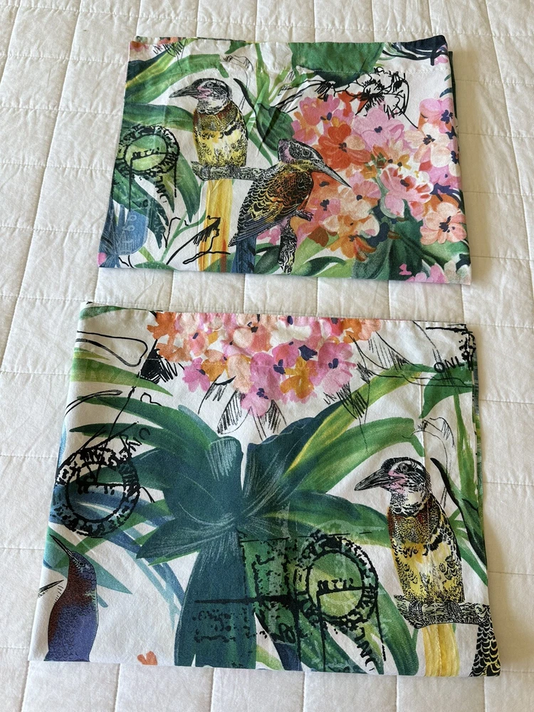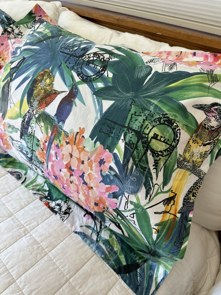 Pair of Pottery Barn Caesarea standard size pillow shams. 100% Cotton, 200 thread count. Made in Israel 2015. Multicolored Botanical, Hydrangea, Tropical Bird Print. Measuring 23”x 24”. Envelope enclosure. Condition is Pre-owned excellent condition. No fading, stains, or damage. Freshly laundered and pressed.