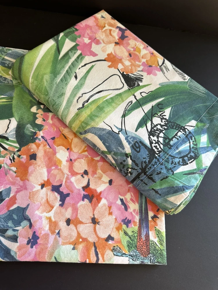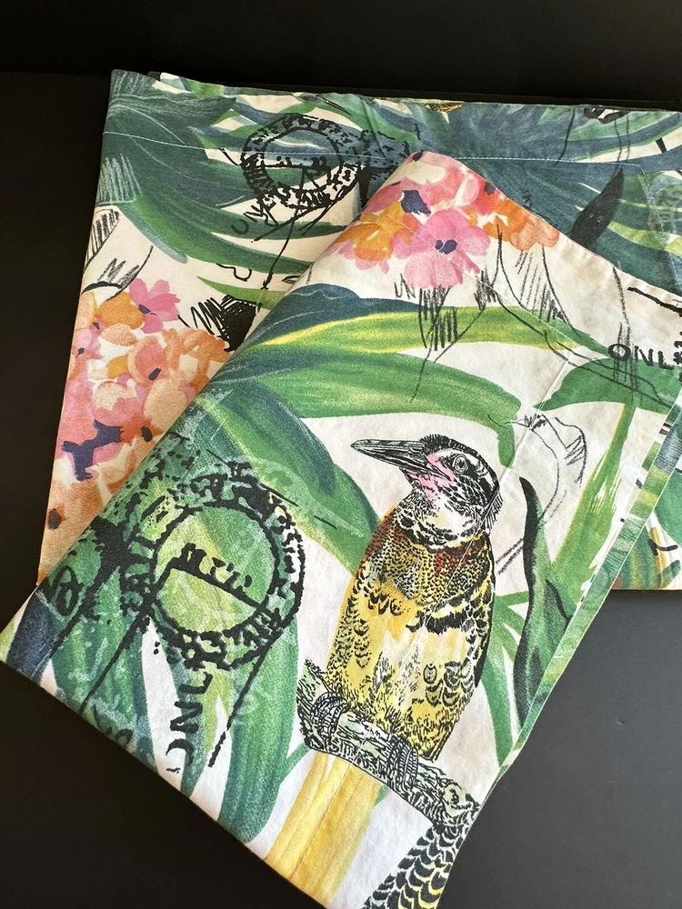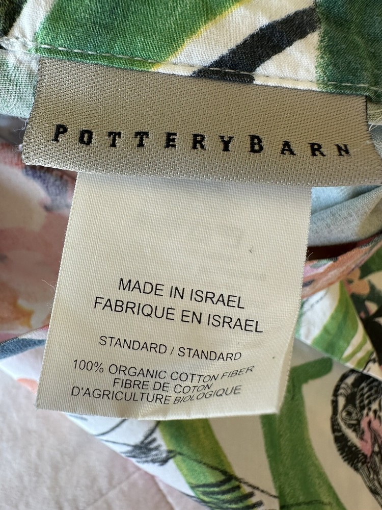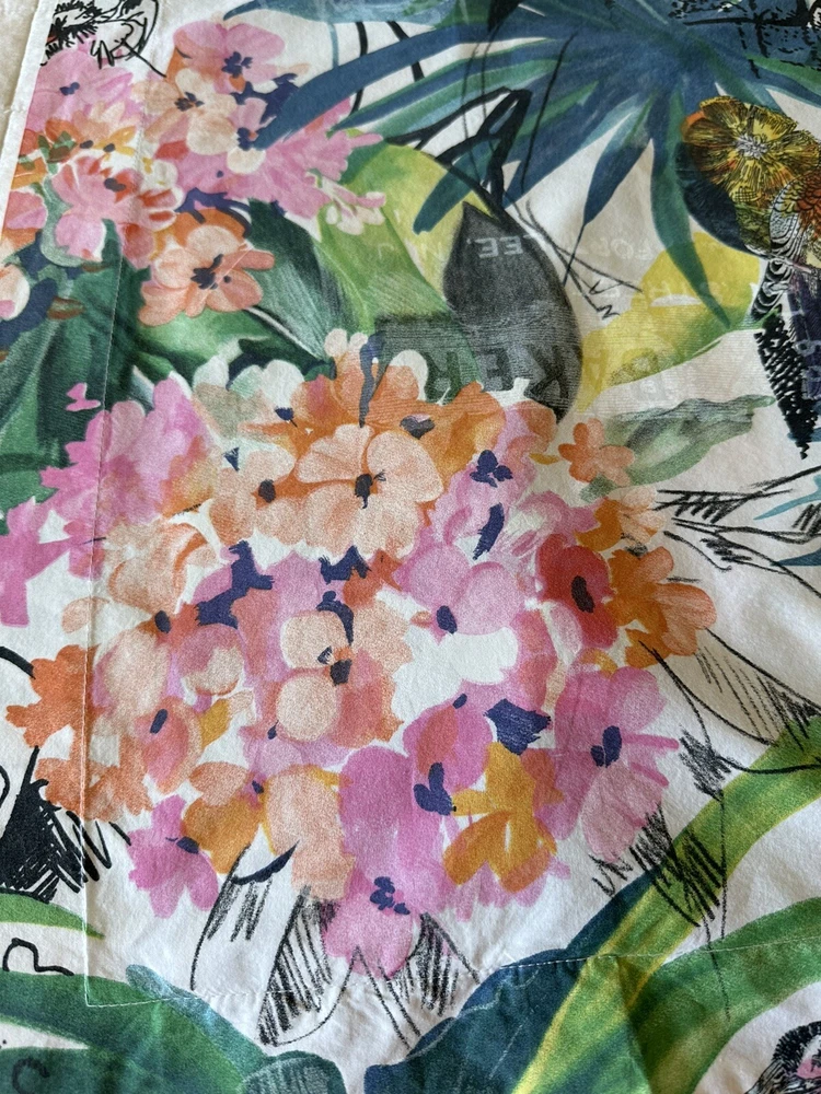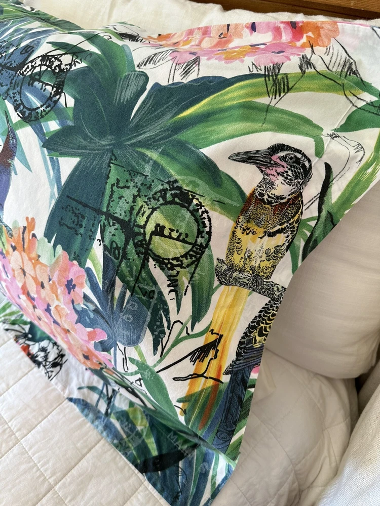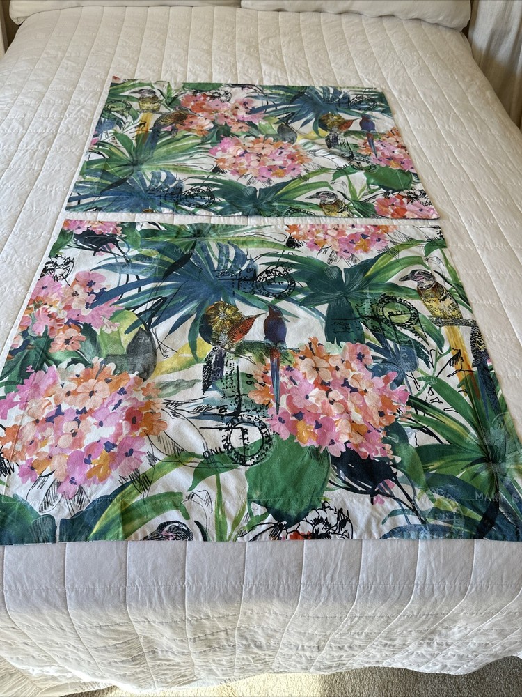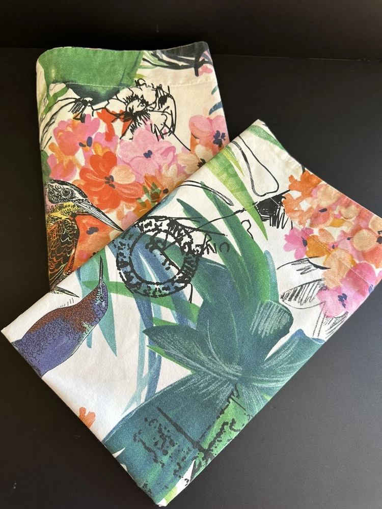 Pair of Pottery Barn Caesarea standard size pillow shams. 100% Cotton, 200 thread count. Made in Israel 2015. Multicolored Botanical, Hydrangea, Tropical Bird Print. Measuring 23”x 24”. Envelope enclosure. Condition is Pre-owned excellent condition. No fading, stains, or damage. Freshly laundered and pressed.