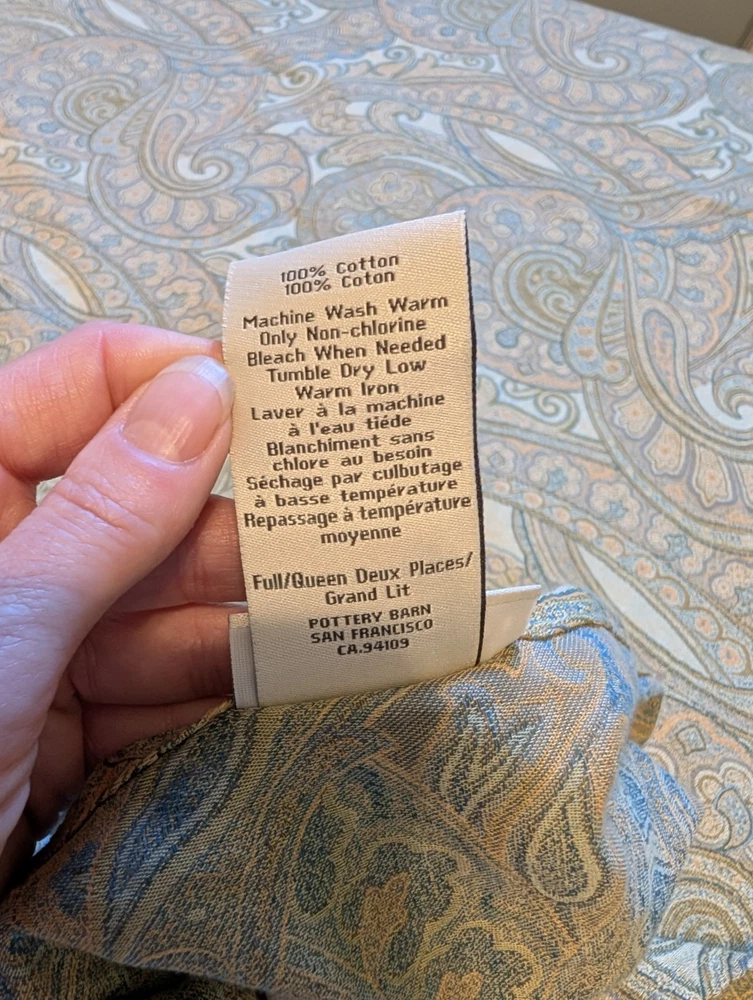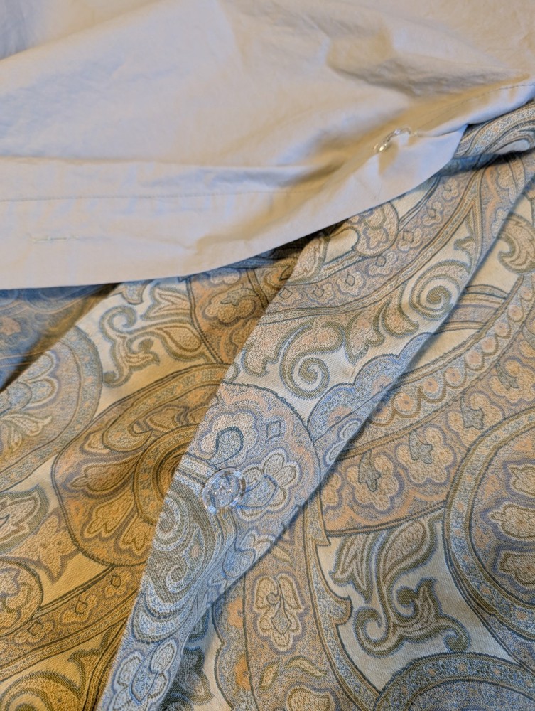 Pottery Barn Paisley Duvet Cover Blue Green Gold Queen 100% cotton Made In Italy. Condition is Pre-owned. Shipped with UPS Standard Canada.