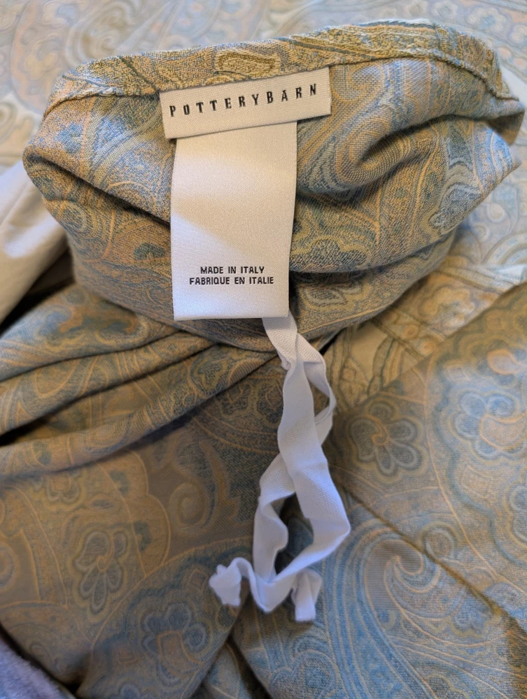 Pottery Barn Paisley Duvet Cover Blue Green Gold Queen 100% cotton Made In Italy. Condition is Pre-owned. Shipped with UPS Standard Canada....