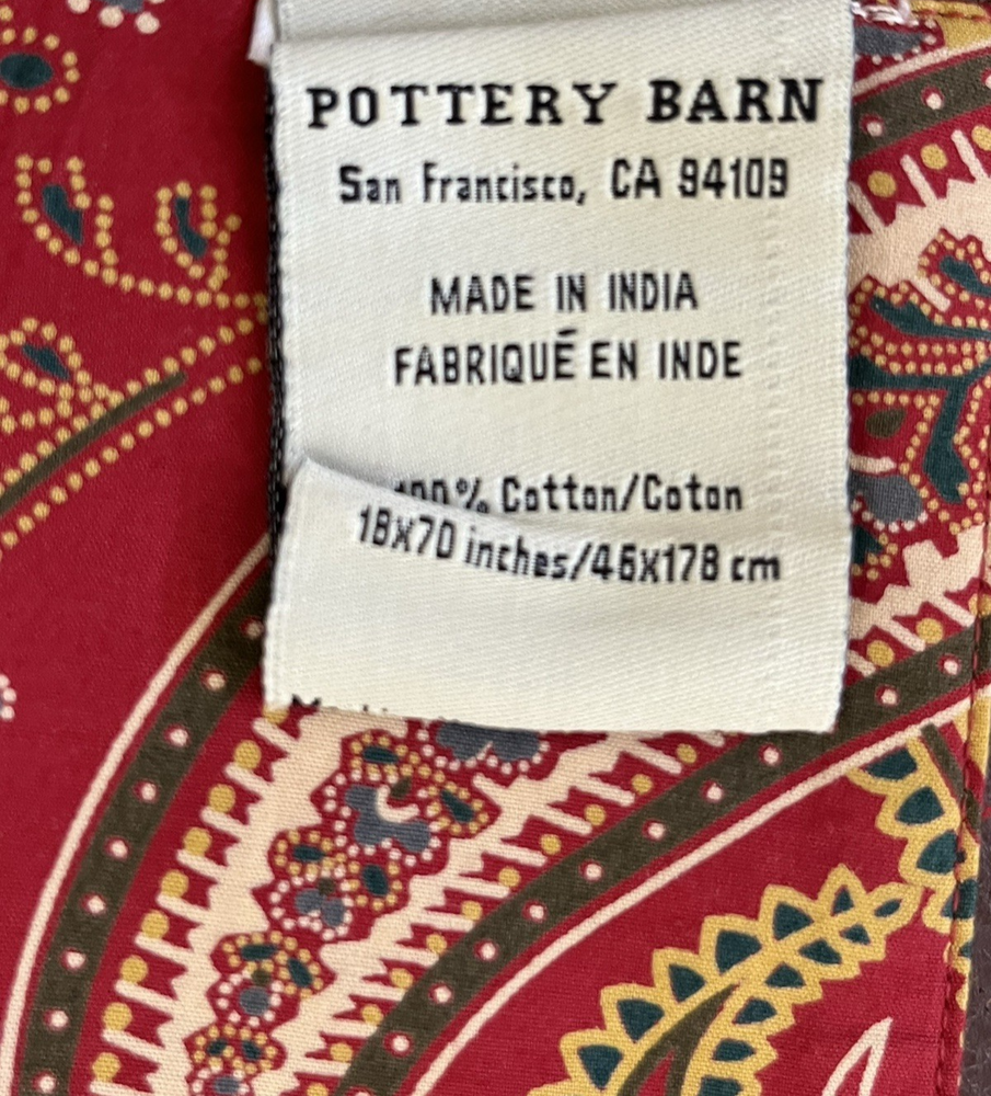 Pottery Barn Paisley Table Runner Red Yellow Green 18 x 70" Christmas excellent condition...