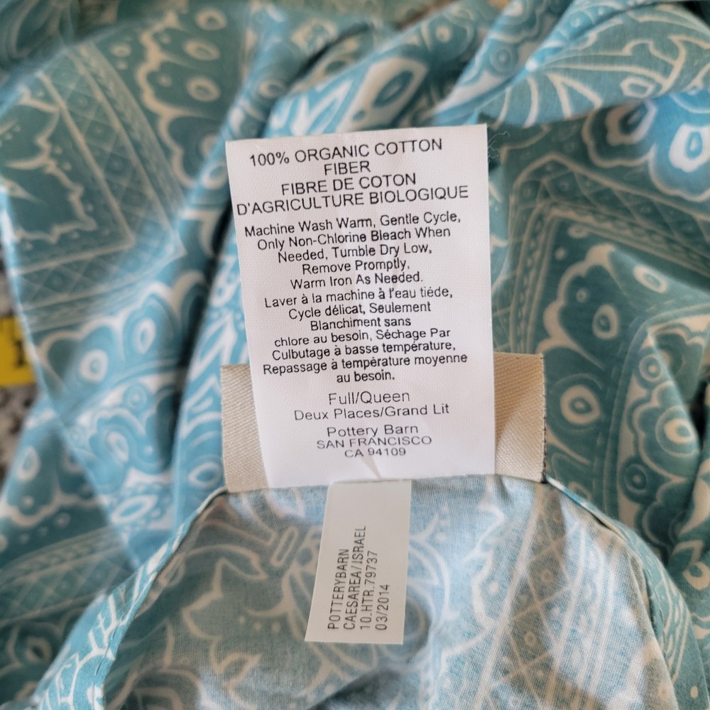 Pottery Barn Pale Blue White Vanessa Full Queen Duvet Cover 2 Standard Shams Duvet 88x92 Shams 24x30 including 2" Flange Great condition Vintage wash