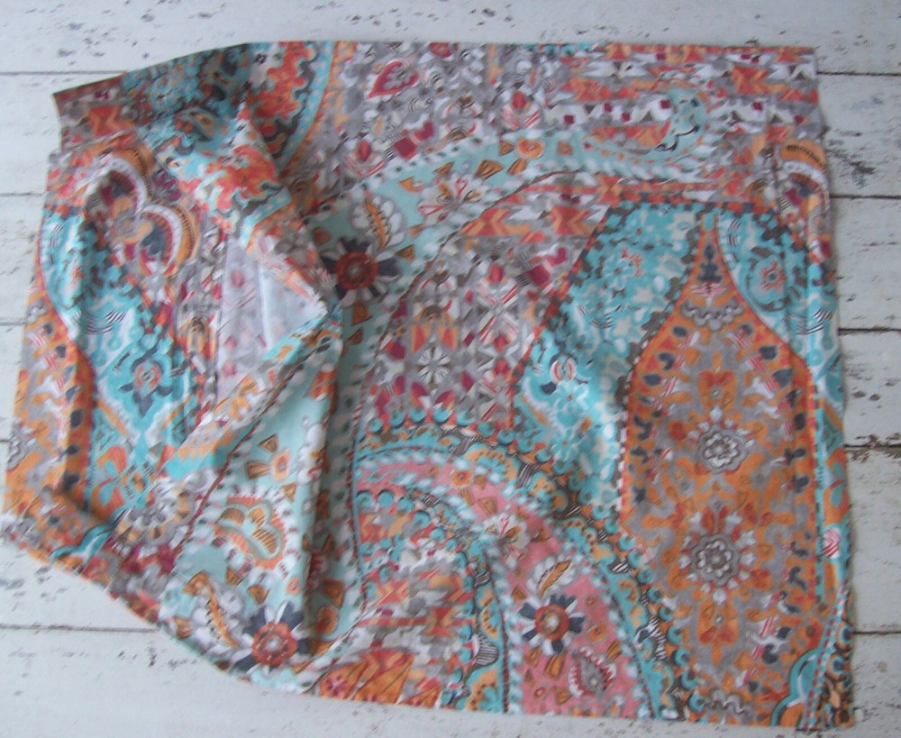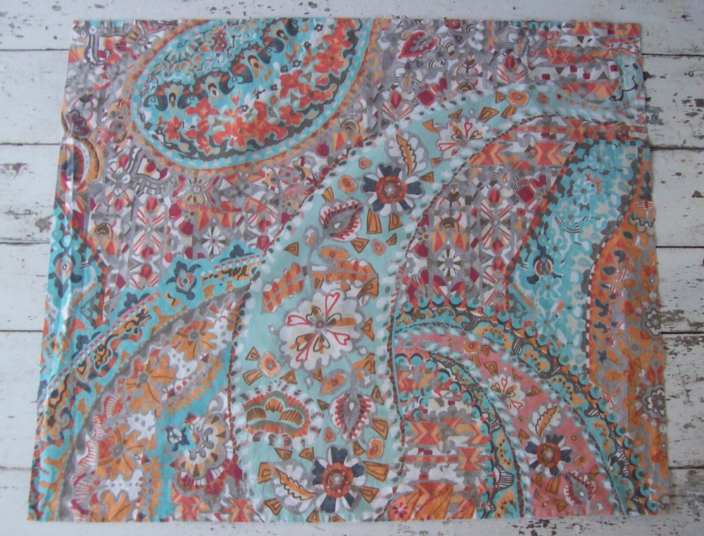 BRAND: Pottery Barn ITEM: 3-piece bedding set: Full/Queen button-close duvet cover ( 88" l x 92" w) 2 standard pillow shams (20,5" h x 24 " w , plus 2-inch flange on all sides) PATTERN: Paloma Paisley (an intricate floral paisley design with contrasting colors) FABRIC: 100% organic cotton percale, 200-thread count CARE: Machine wash, tumble dry CONDITION: Pre-owned, very good. Normal wear. No flaws to note.
