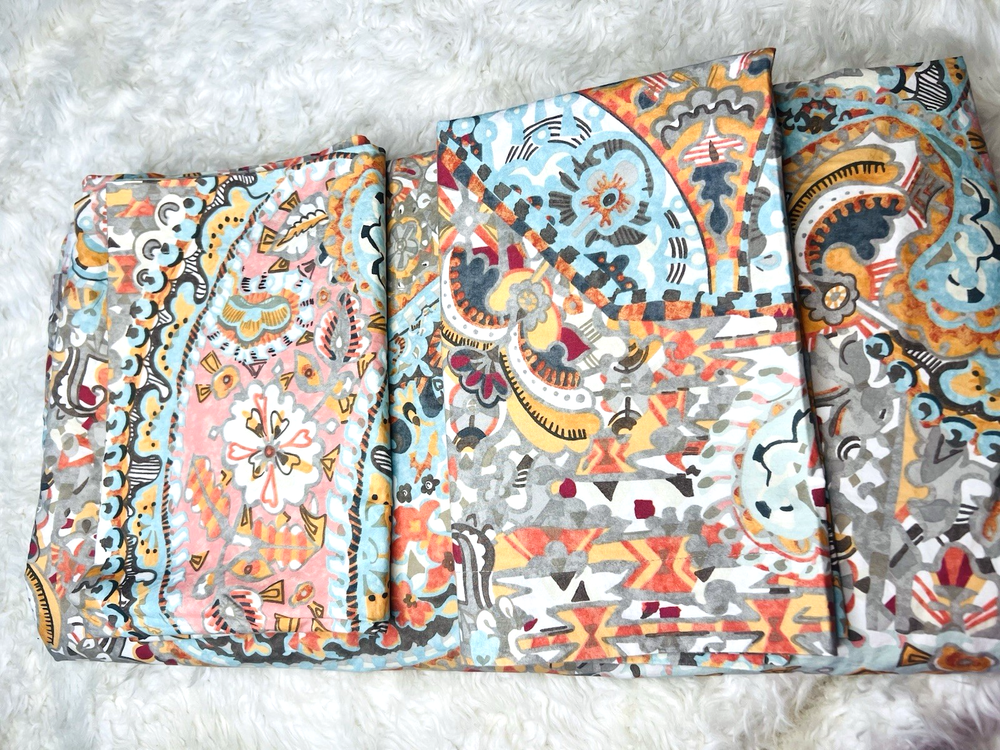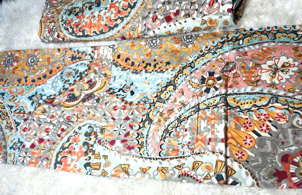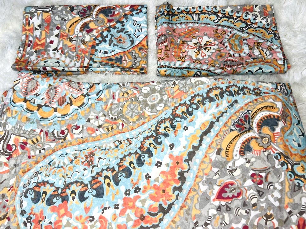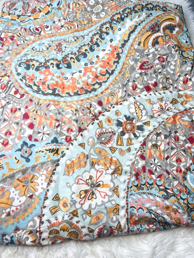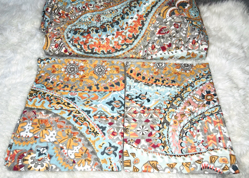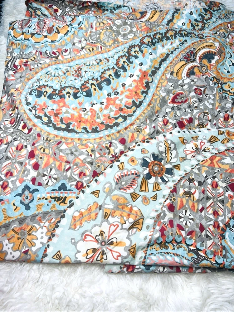 Beautiful 3 piece set Pottery Barn Paloma Paisley Queen Duvet and 2 Pillow shams Rarely displayed in spare room Colors are beautiful together all 3 pieces are in really beautiful condition the set feels like it’s been rarely washed Clean smoke free home We ship everyday