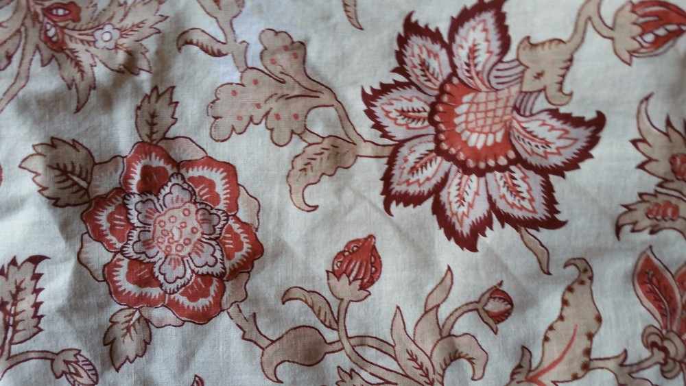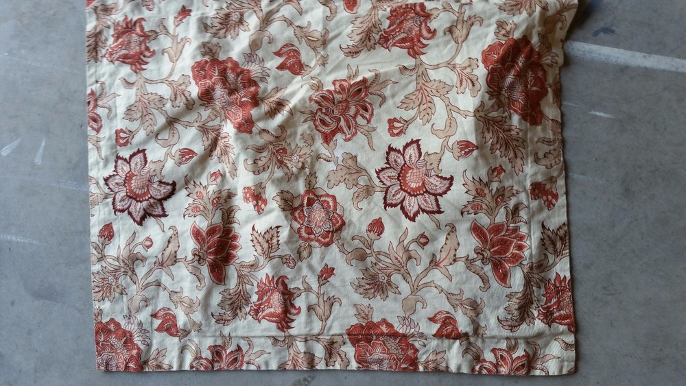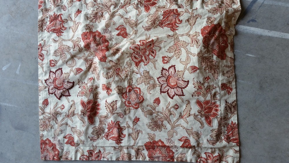 Beautiful! In very good condition, envelope closure; beige with rust and burgundy colored floral design; in linen and cotton blend; Will combine shipping for multiple items. Thanks for looking. All items are sold "AS IS" , they are pre-owned unless otherwise stated and will need to be washed ; if you have any questions about the item please ask before purchasing; No refund will be given on a missing part, wrong colors (ex. White not as white as customer wants), wrong pattern, dirt (I live in the desert so it's inevitable – it washes right out), size, grease pencil marks or tag holes. I try to describe item the best that I can and supply numerous photos, please look at photos closely -- I will be more than happy to take different photos, measurements, etc. if needed for you. Thanks for looking!