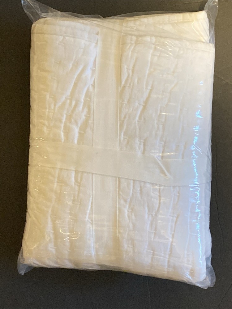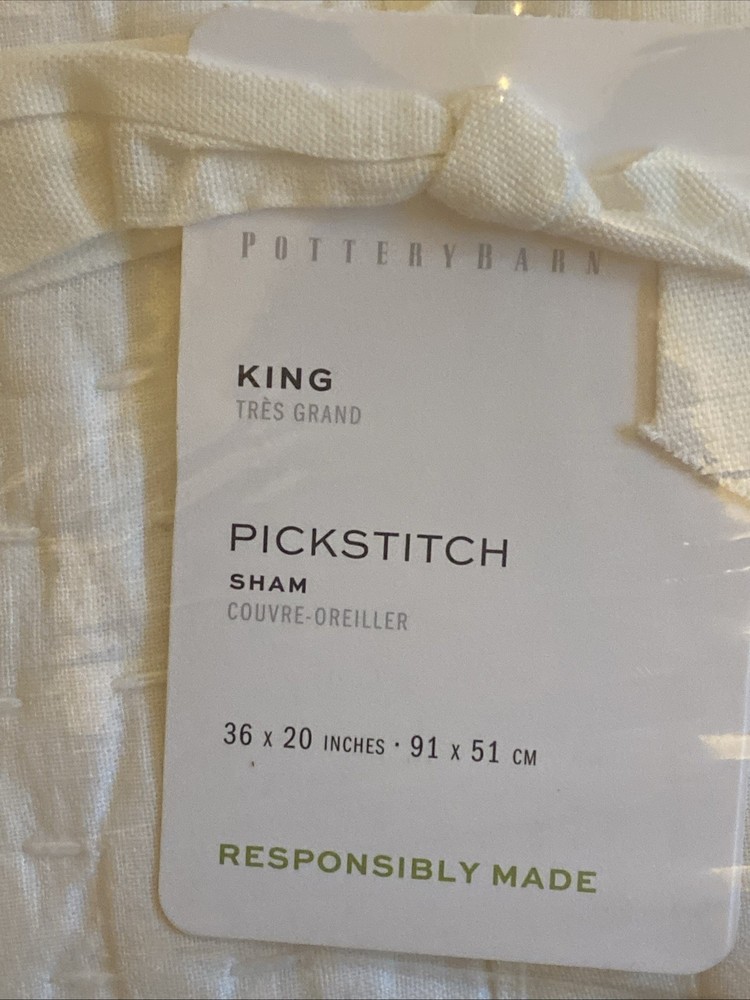 Elevate your bedroom with the Pottery Barn PickStitch Handcrafted Cotton Linen King Sham. This white, king-size sham features a timeless pick-stitch pattern that adds a touch of elegance and sophistication to any bedding ensemble. The luxurious linen cotton blend ensures comfort and durability, making it a perfect centerpiece for your room. The sham's dimensions, a generous 36" in length and 20" in width, fit seamlessly on a king-sized bed. It's adorned with a quaint tie closure that complements its rectangular shape. Whether you're refreshing your space or gifting a loved one, this Pottery Barn Pick-Stitch sham is a tasteful addition to any bedroom. New with tags MSRP: $69