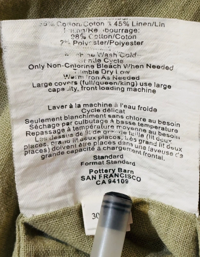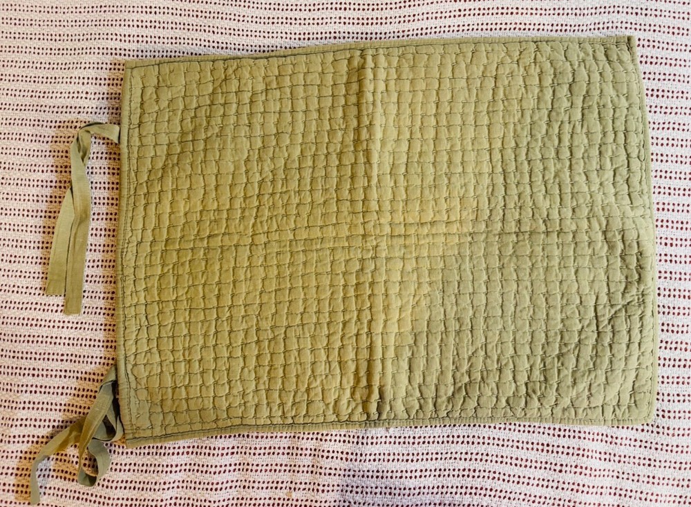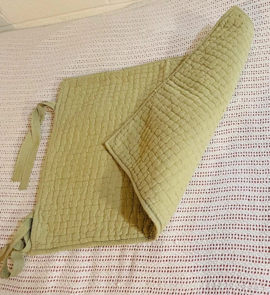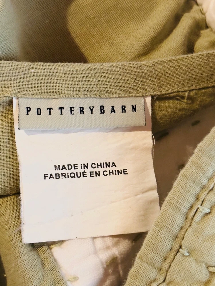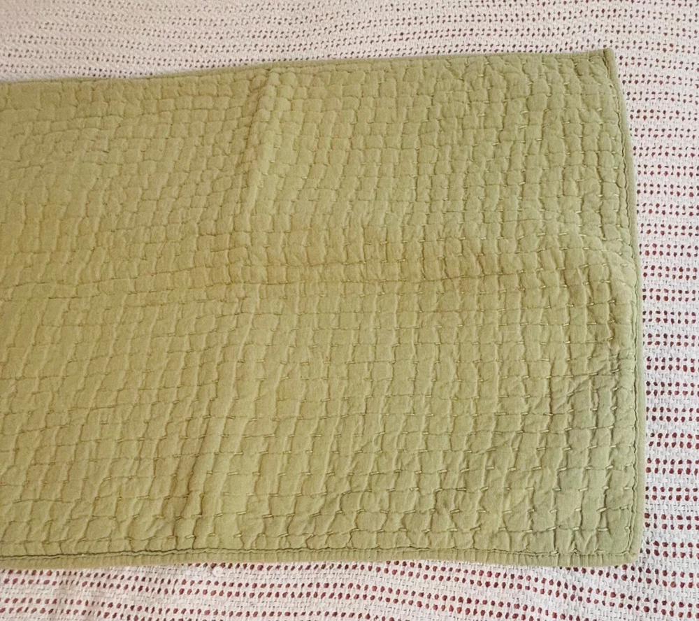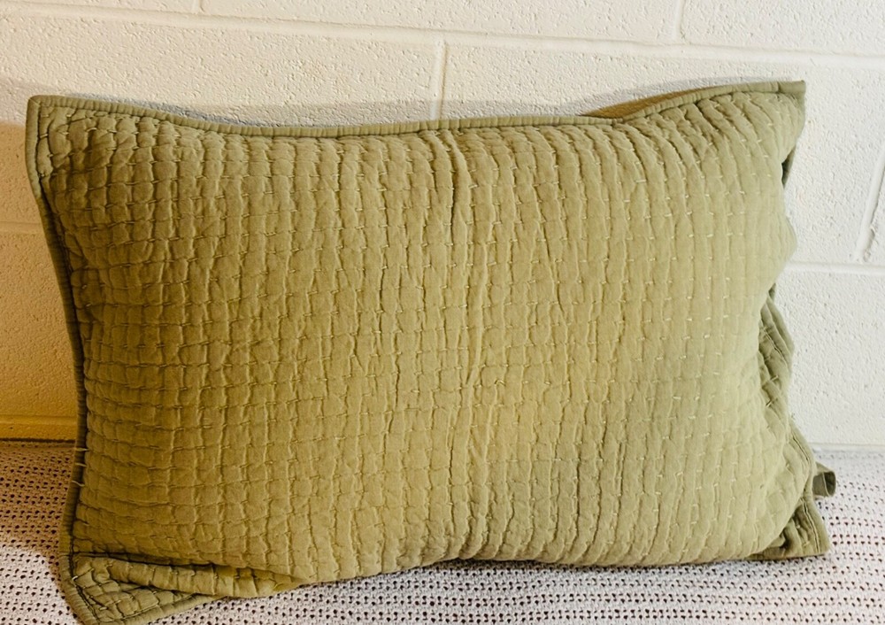 Pottery Barn Pick-Stitch Sham in Green, made of a Linen/cotton blend, features a rectangular shape with a Quilted Pattern. The standard size measures 26 inches in length and 20 inches in width. This modern style Pillow Sham from the Pottery Barn line is machine washable and has a closure with ties. Suitable for both Teens and Adults, it is a handcrafted piece from China.