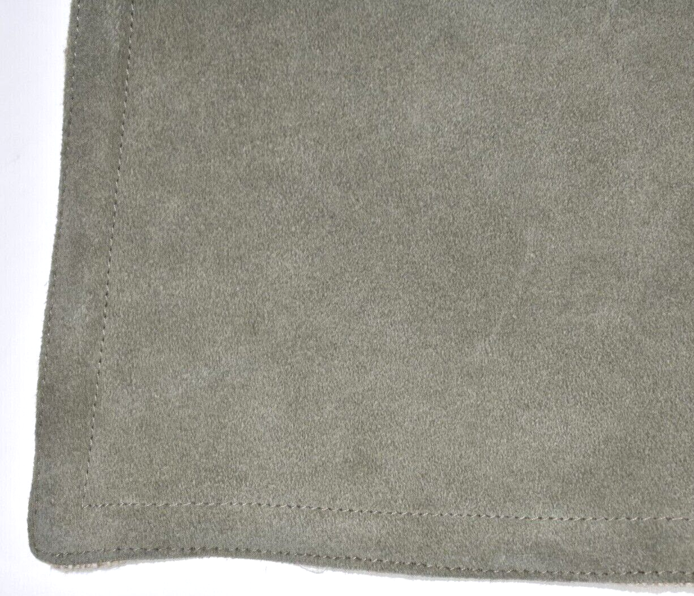 This pillow cover is a stylish and versatile addition to any home! The suede leather front gives it a luxurious, rustic-chic look, while the neutral green-gray color blends effortlessly with any decor. The quality stitching and soft texture make it feel high-end, and the reversible design offers two looks in one. Even though it's gently used, it’s in great condition—perfect for adding a cozy, modern touch to your sofa or bed. Love the unique pieced design!