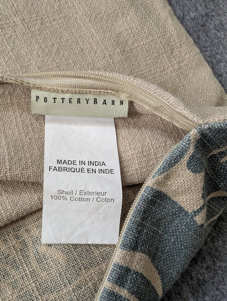 Pottery Barn Pillow Case Sham 15.5”x26” Blue/Beige Floral Cotton
