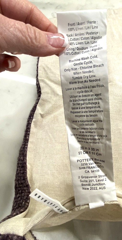 Add a touch of contemporary style to your home décor with this Pottery Barn Pillow Cover. The square pillow cover measures 20 x 20 inches and features a purple amethyst tweed linen pattern that is both stylish and textured. The zip closure makes it easy to remove and wash the cover, and it is machine washable at cold temperatures. Ideal for use on a sofa bed or as an accent piece on a guestroom, this pillow cover is made of 100% linen and is perfect for both women and men. The pillow cover is not customized and does not come with any personalization options. It is a great addition to any bedroom, living room, lounge, or guestroom. This pillow cover is unavailable at PB, so don't miss your chance to grab it now!