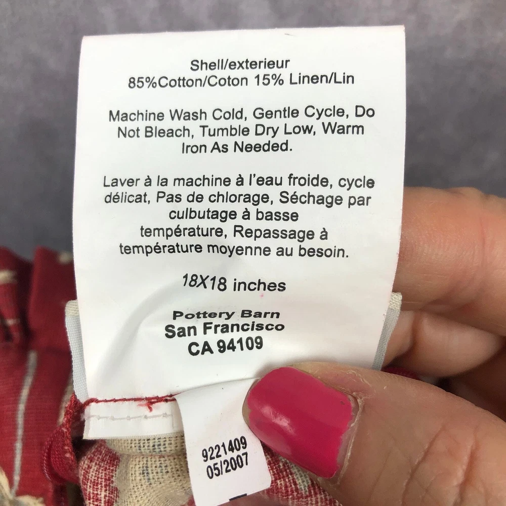 <![CDATA[<div>Pottery Barn Pillow Cover Sham Floral Ruffle Trim Cotton Linen Blend 18 x 18 Zipper closure Very good pre-owned condition (AE)...