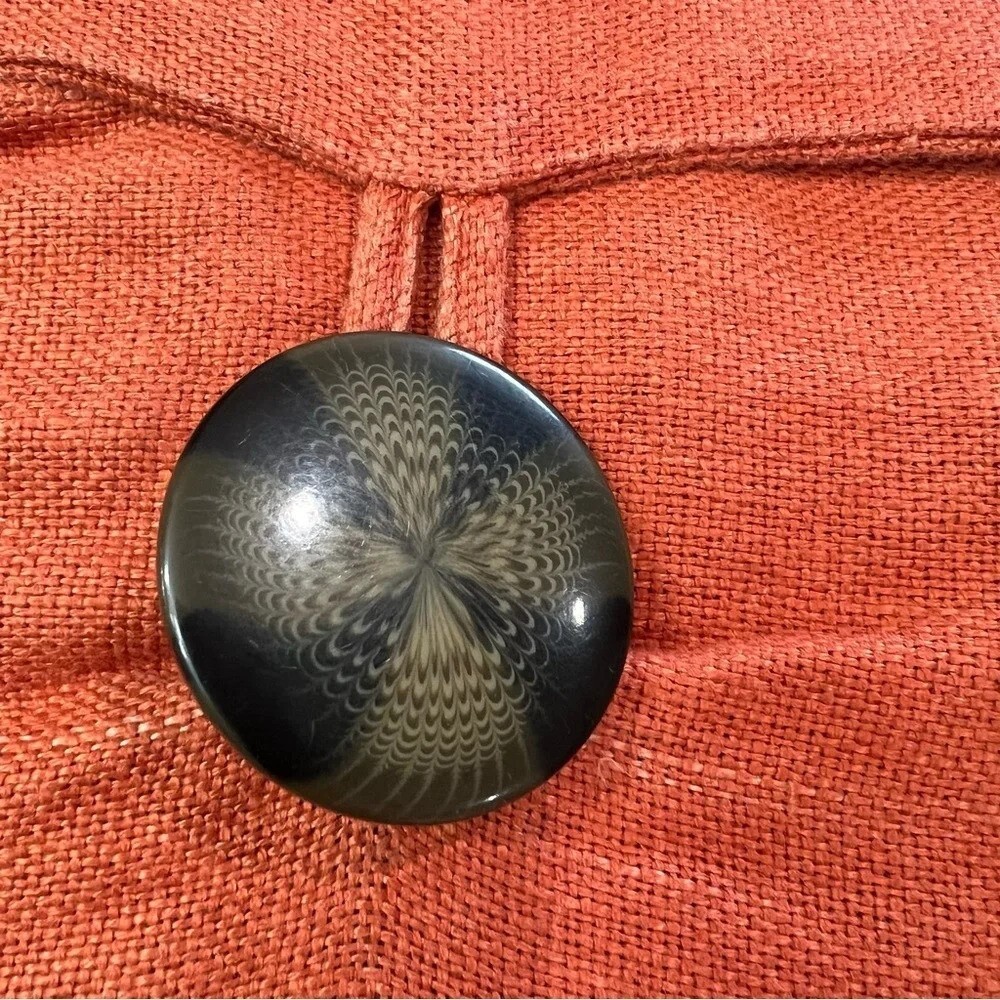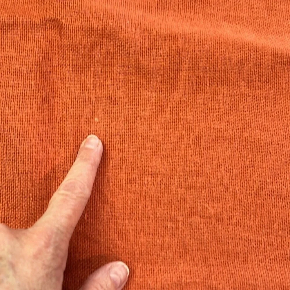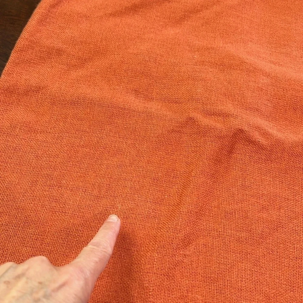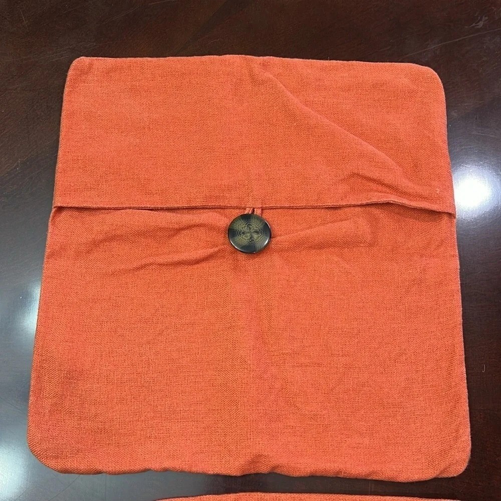 Pottery Barn Pumpkin Color Pillow Covers (2) 18" x 18" You will be receiving (2) 18" x 18" pillow covers with a tortoiseshell button closure. Covers are 100% Linen Pillow covers are in great condition. Please see last 2 photos where it appears a few of the fibers have lightened. It is nothing major at all just wanted to point it out. 12/7/24