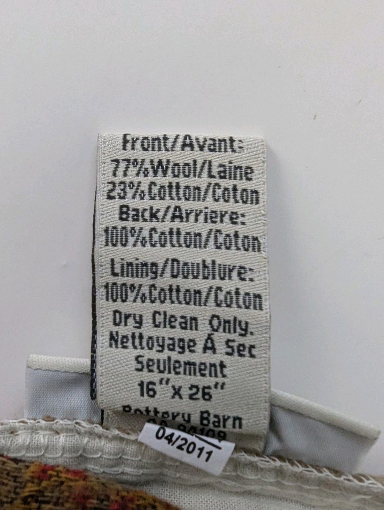 Pottery Barn Pillow Sham Cover Wool Cotton Zipper Multicolor 16x26 Zip Closure