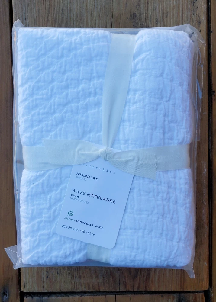 Brand new in original plastic wrap. Two sizes available: King and Standard. Modern, textured wavy matelassé pattern. Solid white color makes it easy to combine with many betting styles. Soft and cozy. Size King 36” x 20”. Size Standard 26” x 20”. Made of 100% yarn-dyed cotton matelassé. Reverses to the same. Featuring flap closure. STANDARD 100 by OEKO-TEX Certified. Made in Portugal. Machine washable. We'll be happy to answer any questions you may have. ALL ITEMS COME FROM CLEAN, SMOKE FREE / PET FREE PLACE. POLICIES: PAYMENTS: Please submit payment no later than 2 days from the date of purchase. SHIPPING: Will ship within 1 business day (Monday to Friday) of receiving cleared payment. We take our reputation seriously, we buy and sell online, so we understand the value of trust. If you are unsatisfied with your order, please contact us and we will work with you to resolve it to your satisfaction. Returns accepted within 30 days. In the rare event of returning item: Please make sure item returned in packaging and condition, it was received. We offer free return shipping. Thank you for dropping by!