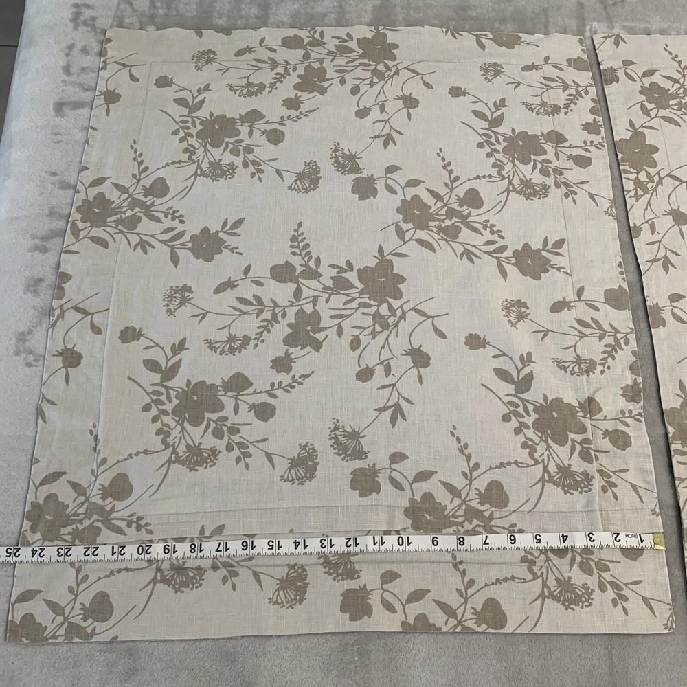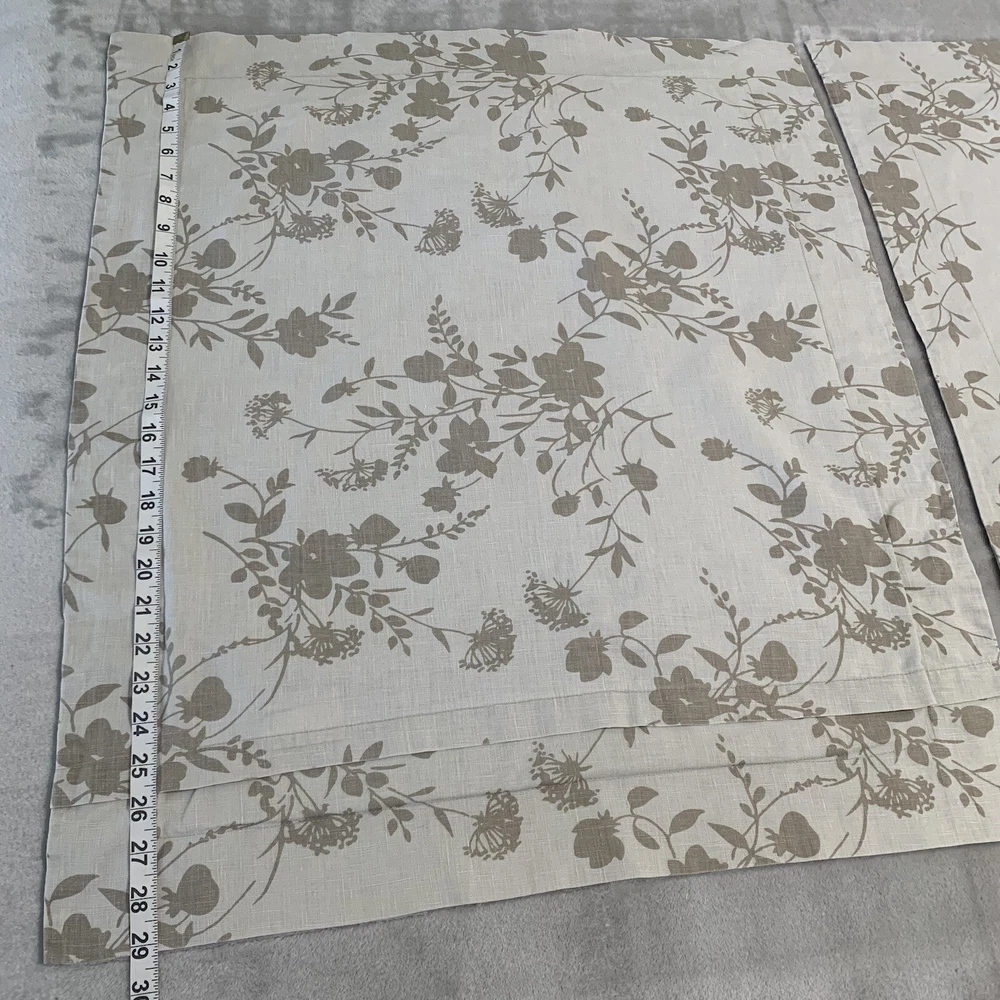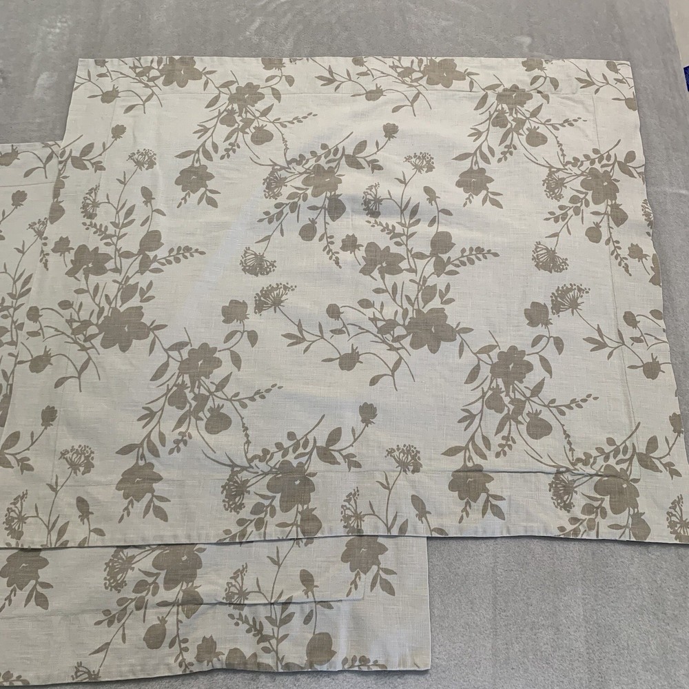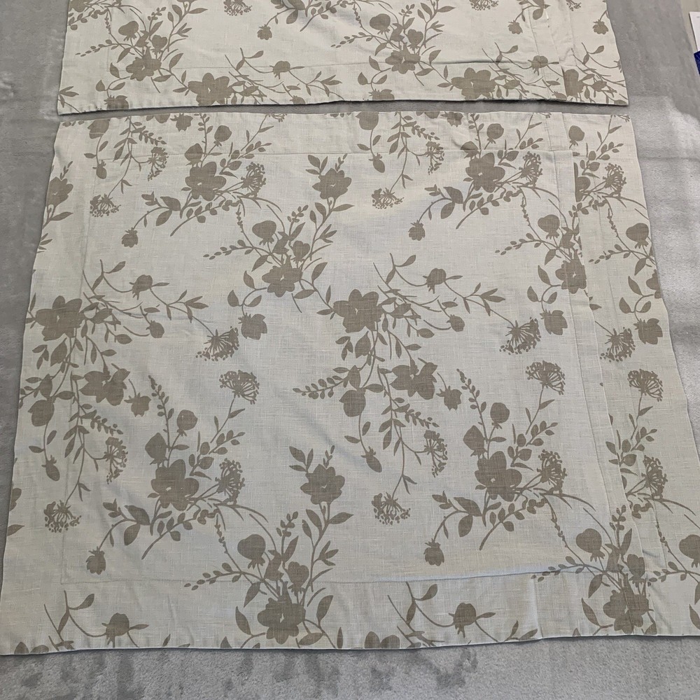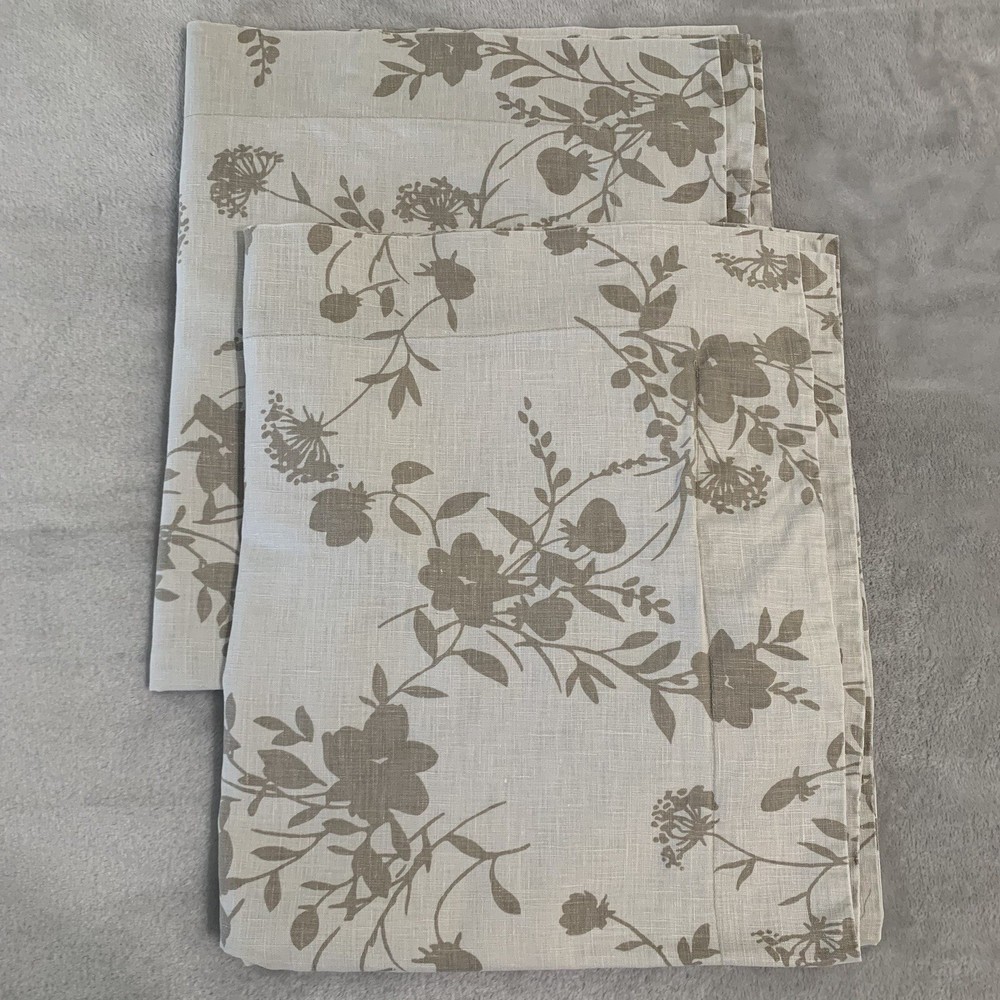 Pre-owned. Pottery Barn floral pillow shams. Beige/taupe colored with light brown floral pattern. Defined trim. Fits 22” square pillow, not included. Envelope closure back.