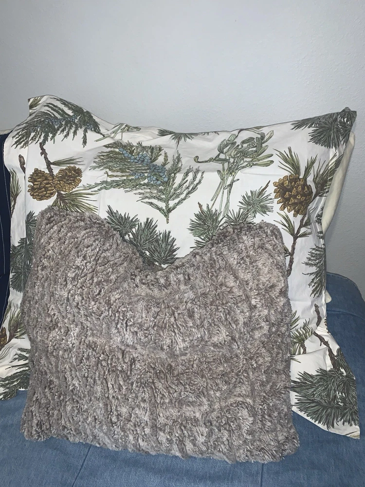 Lot comes with 1 euro shame and homemade looks to be twin sized duvet. The measurements on the duvet are 82x44in. It has a zipper on one end for closer. Did find a couple of tiny holes. Does have have stains here and there, and some yellowing. From smoke free and pet free home, I do my best to describe my items, questions are ALWAYS WELCOME! Please do so before bidding as I do not offer refunds. Thank you for looking and GOD BLESS!