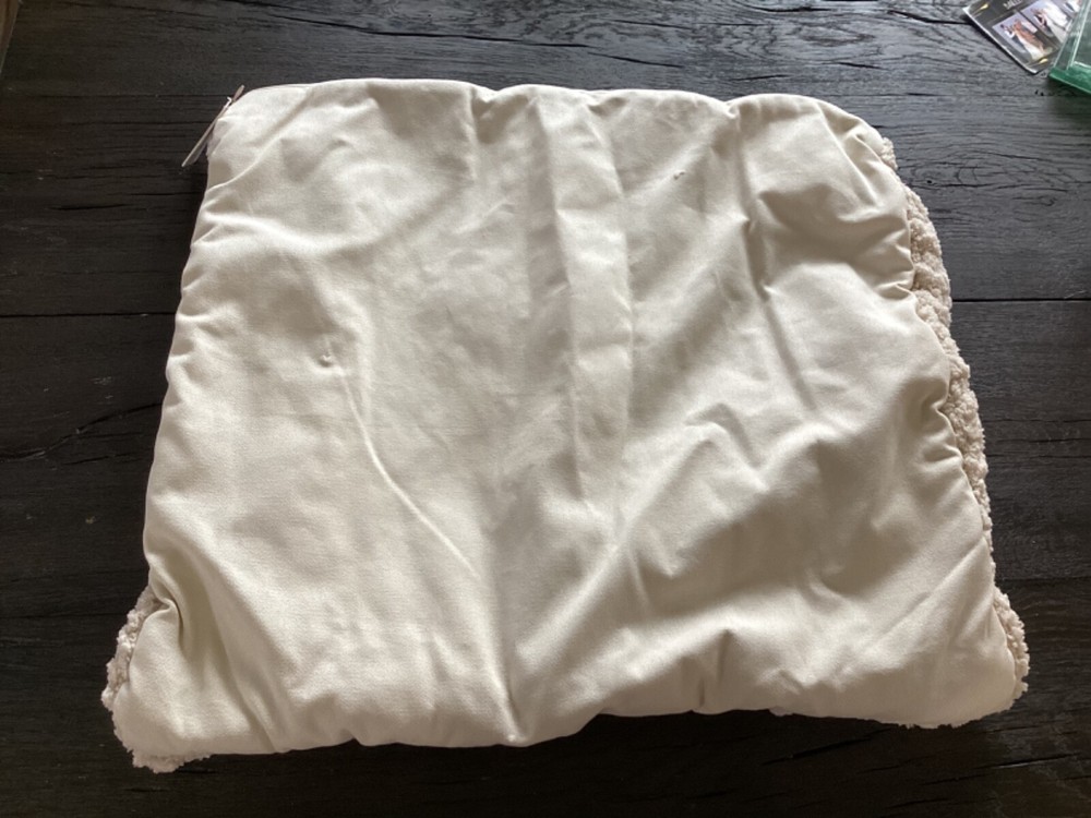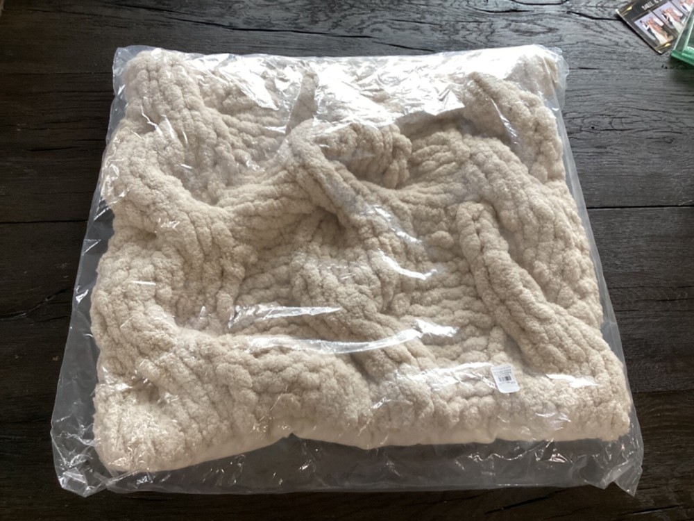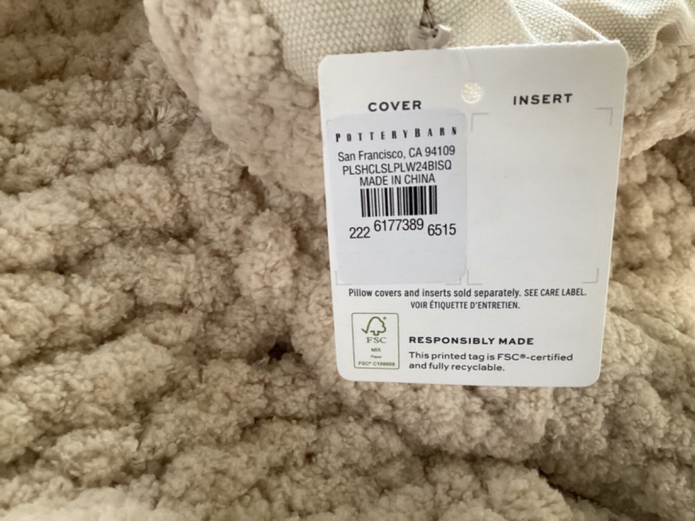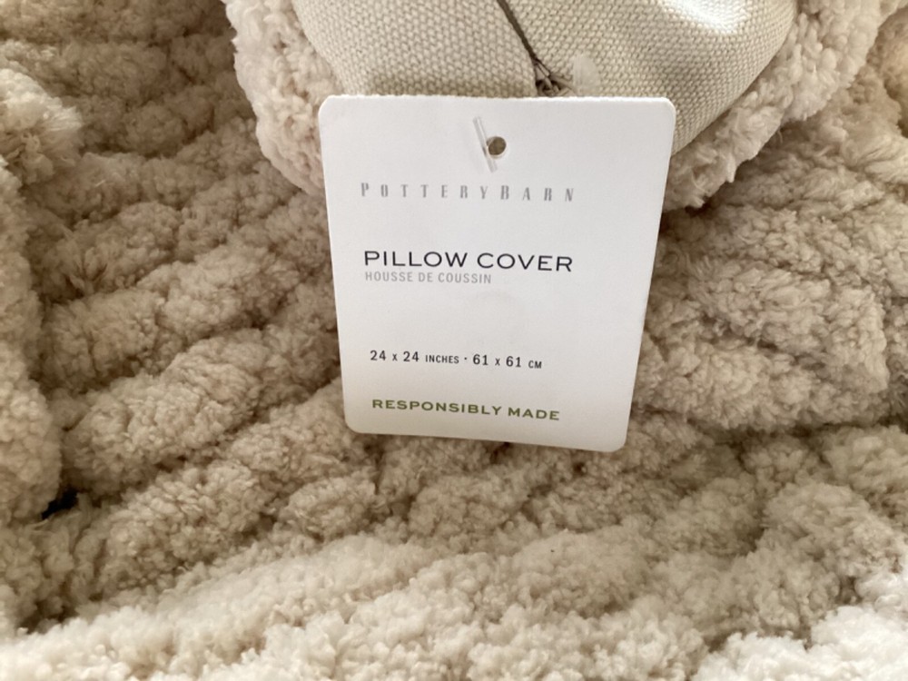 New Pottery Barn Plush Colossal Handknit Pillow cover. This comes from a smoke free and pet free home. This comes from a smoke free and pet free home. Check out my other listings as I can combine shipping. Handknit from 100% Polyester. Reverses to 100% Cotton. Features a zip closure. Imported. CARE Spot clean with soft, damp cloth. Blot to remove excess water; air dry. DIMENSIONS Overall: 24" sq