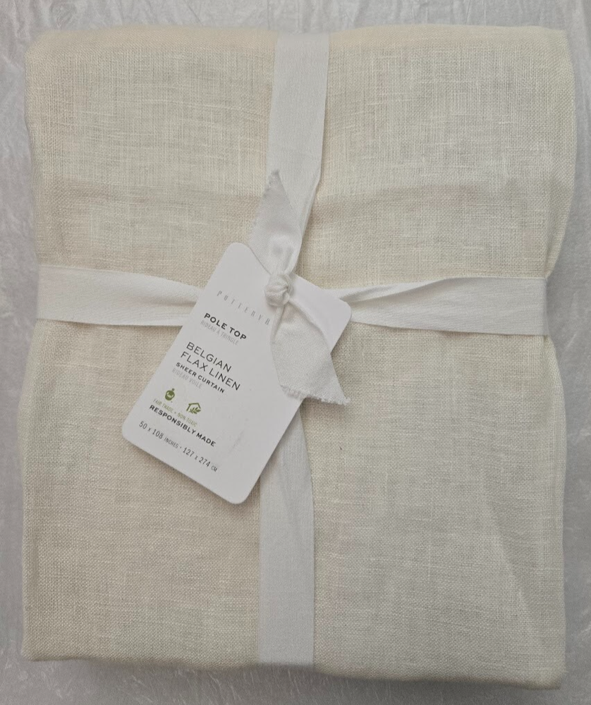 Sold as Show on Photos. Pottery Barn Pole Top Belgian Flax Linen Sheer 1-Curtain in Ivory is a stylish addition to any room in your home. Made from high-quality Belgian flax, this sheer curtain has a solid pattern and a beautiful modern style. With a rod pocket heading, this curtain is easy to hang and provide a light and airy feel to your space. Perfect for teens, adults, and kids, this curtain come in a lovely Ivory color and are designed to be wall-mounted for a seamless look. Easy to care for with dry-clean instructions, this curtain is a timeless addition to your home decor.