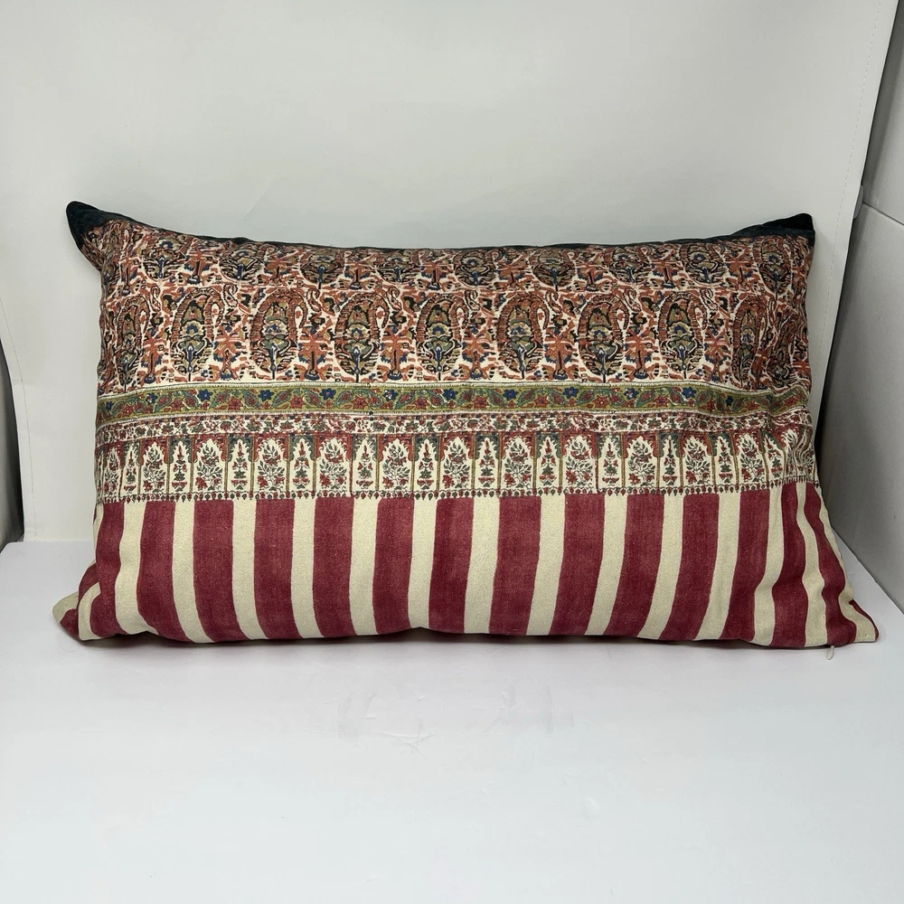 Pottery Barn Pomona Kalamkari Lumbar Pillow Cover Red 16" X 26" Feather Insert 16x26” Throw pillow cover Cotton linen blend And 100% feather pillow insert included
