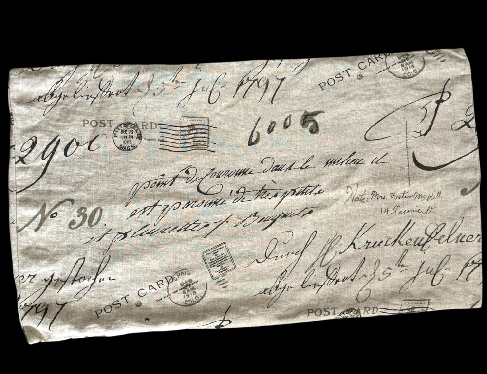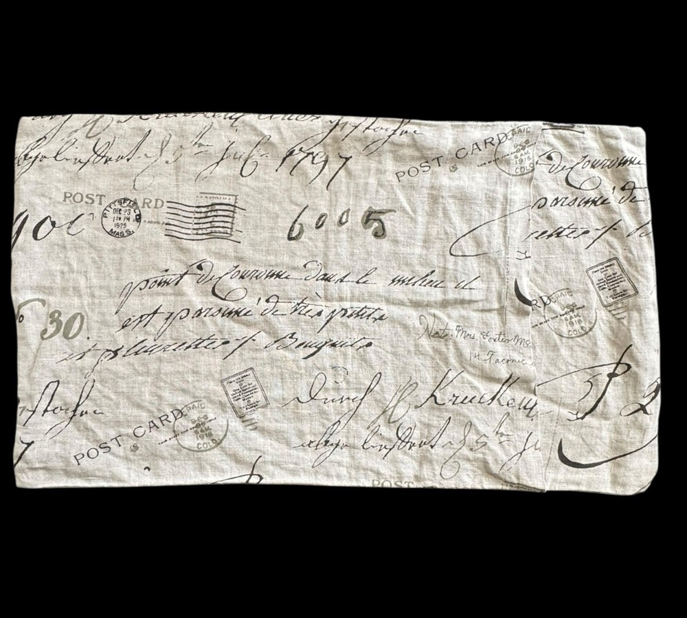 Pottery Barn Post Card French Script Lumbar Pillow Cover 16" x 26" 100% Linen Envelope closure Insert is Not included Lightly used with no flaws to mention. The photos are useful for seeing condition and other details. Photos are of the actual item you will receive.