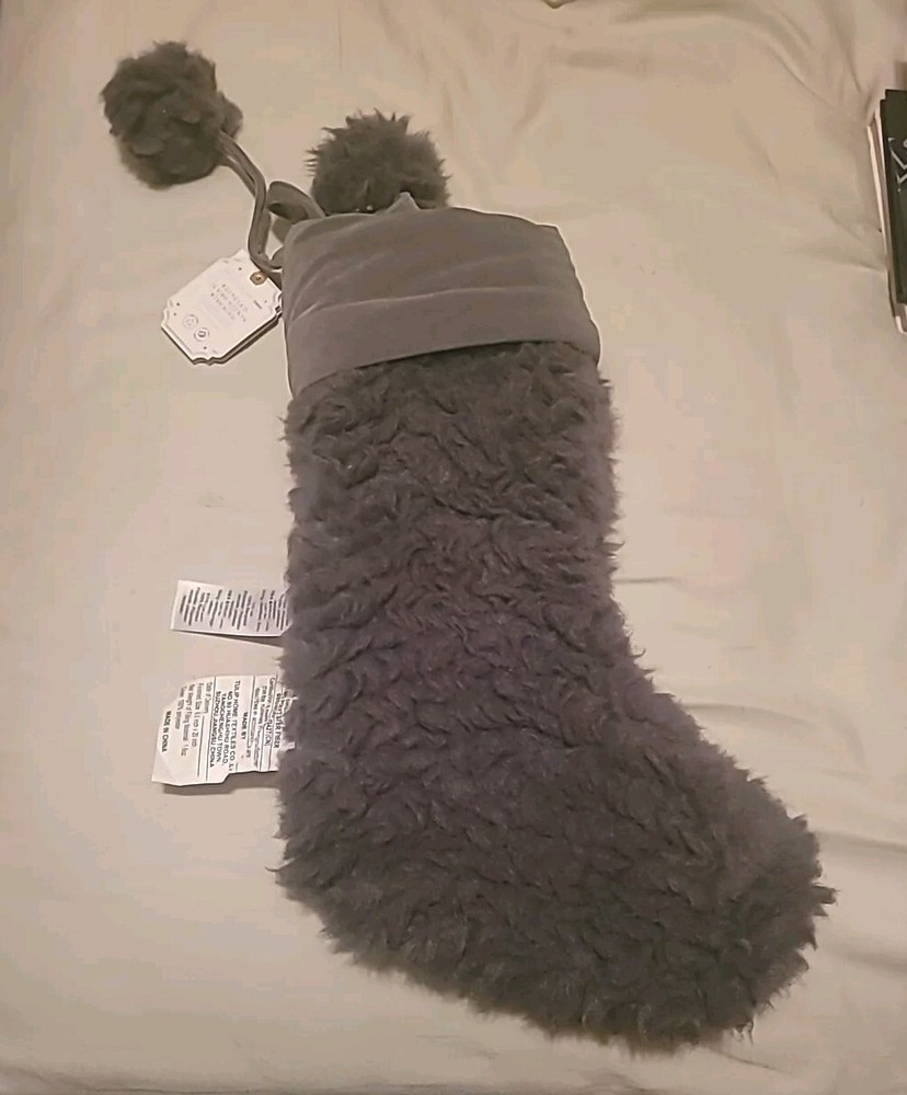 Pottery Barn Teen presents an oversized Christmas Holiday Stocking in a sophisticated shade of gray. This stocking is perfect for the items in your teens' holiday wish list with plenty of room for a rew surprises. Made from polyester. The stocking features a solid pattern, measures 20 inches in length, 12 inches heel to toe and 8.5 inches at the opening. Item is new with tags in original packaging.