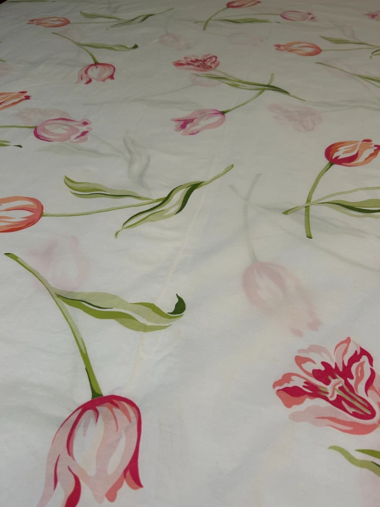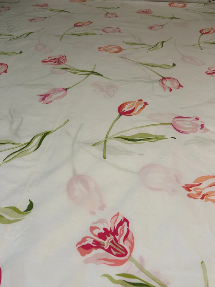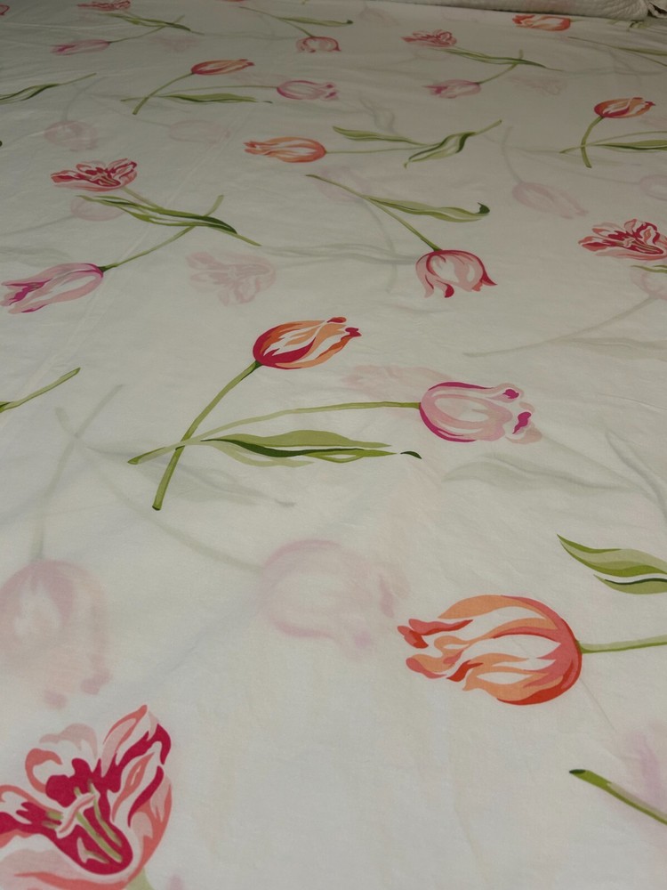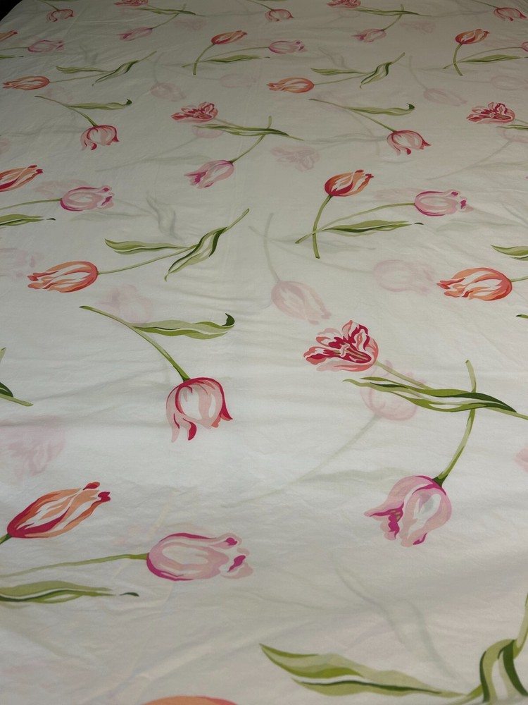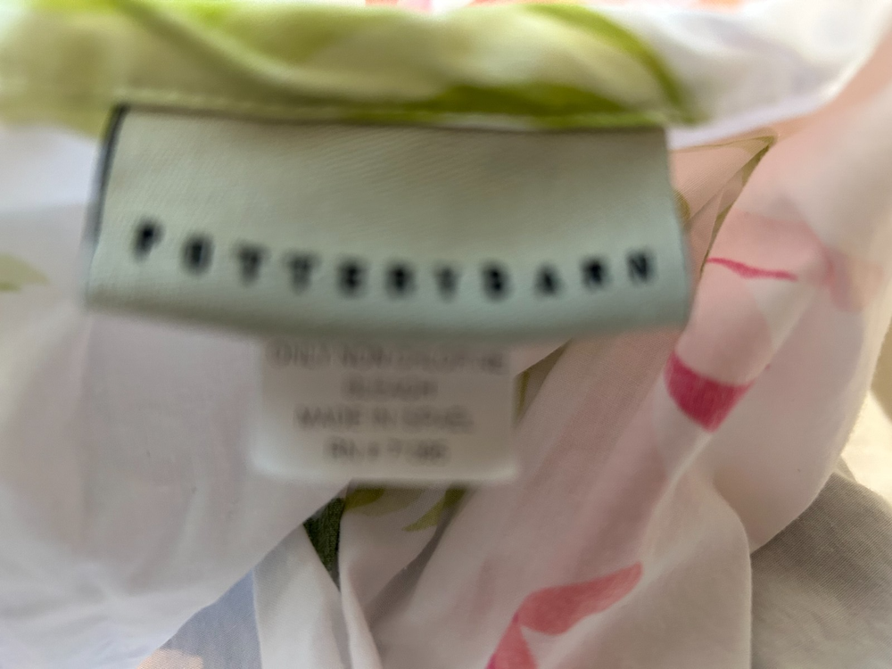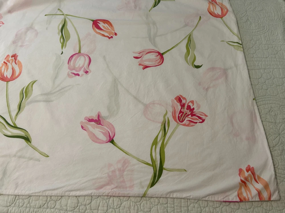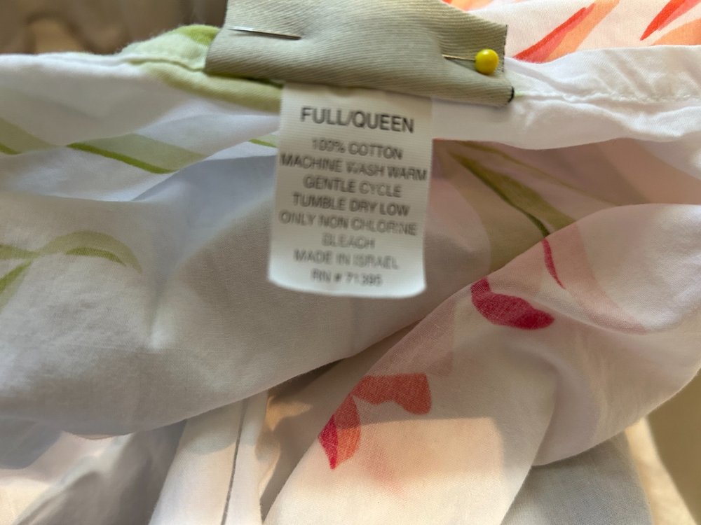 Pottery Barn Tulips Duvet Cover Full/Queen Floral Watercolor. 100% cotton, made in Israel. Reversible: same on both sides. Color: Pink, Orange, Green and White. Machine washable. It's in very good condition, no stains, tears or holes. Freshly laundered.