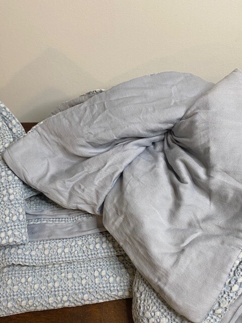 Crafted of pure cotton with plenty of texture, each piece displays highs and lows for beautifully balanced color variations. Made from 100% waffle weave cotton. Duvet and sham reverse to 200 thread count cotton percale weave. Duvet features a hidden button closure with inner ties that keep insert in place