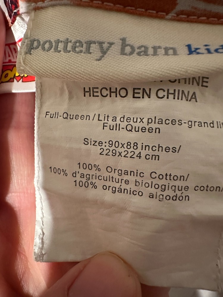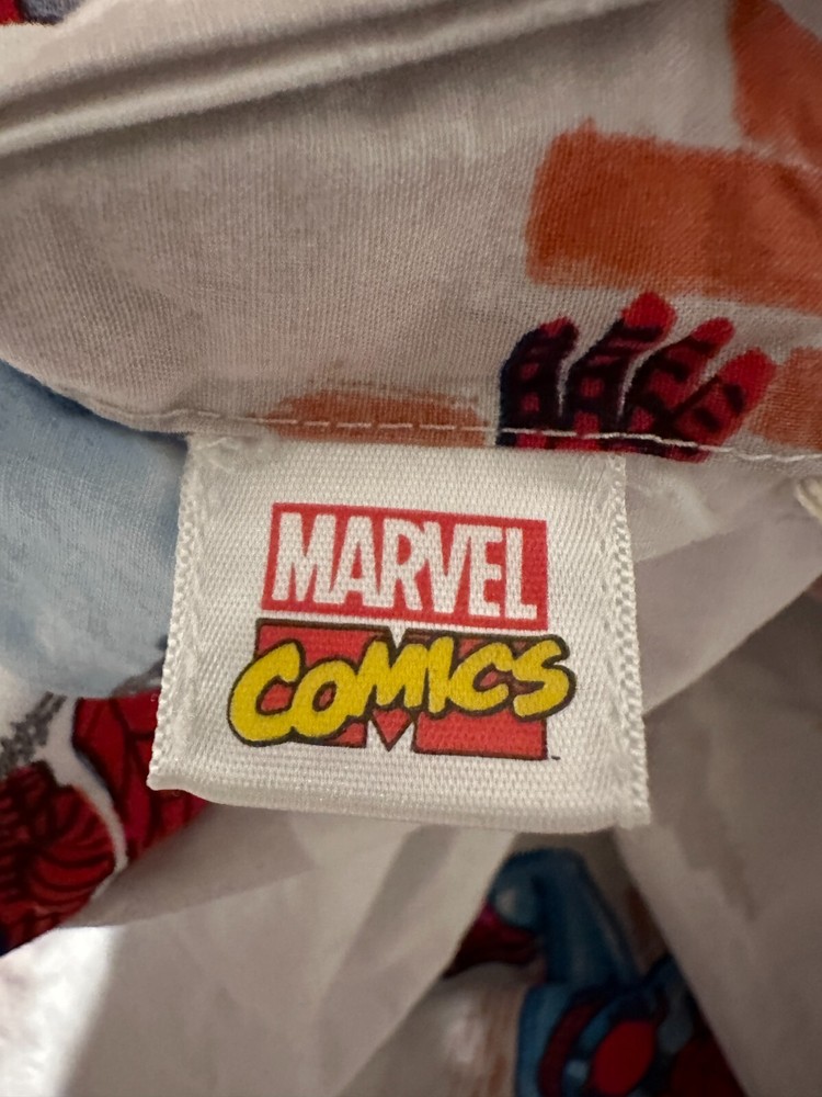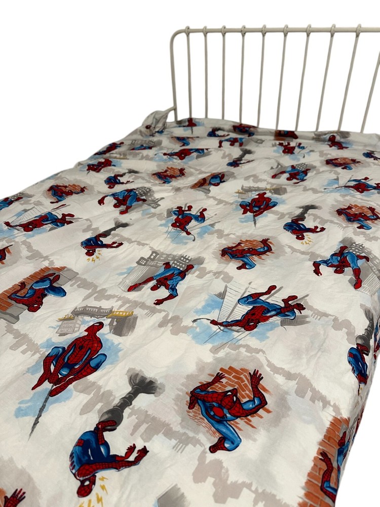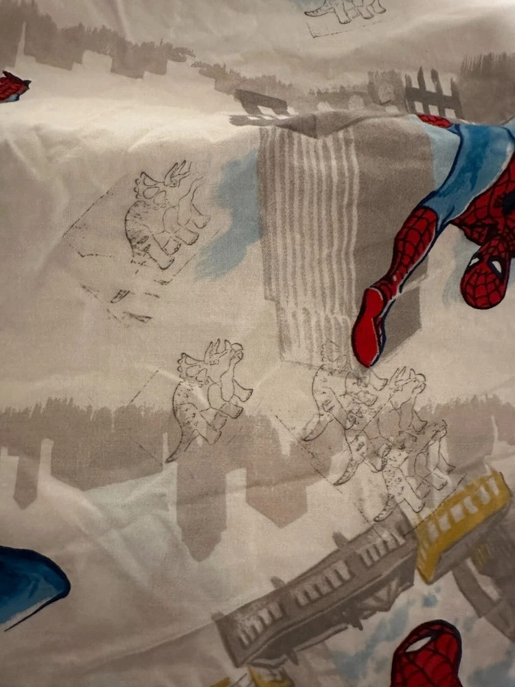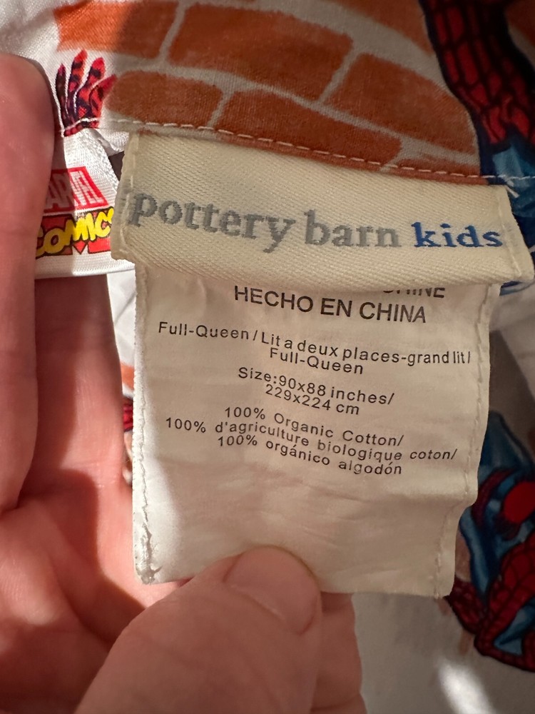 Pottery Barn QUEEN FULL Spider-Man Duvet Cover 100% Cotton FLAWED Flaws- Please Reivew Photos- Dinosaur Stamps/Stains in one area.