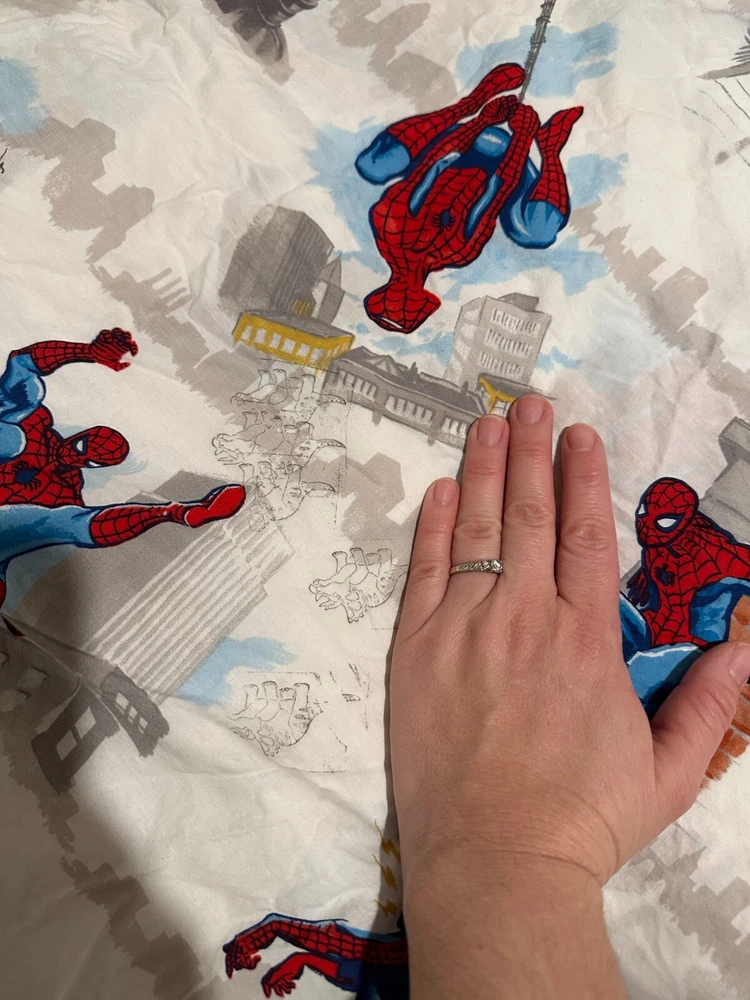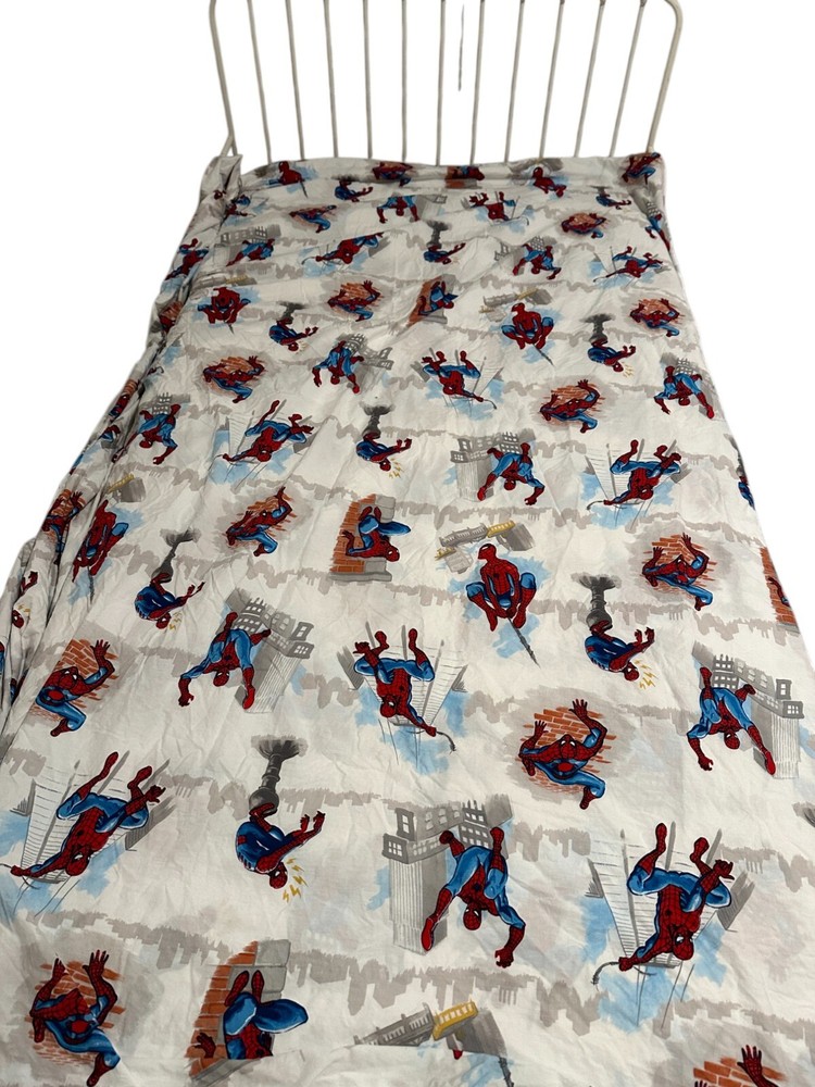 Pottery Barn QUEEN FULL Spider-Man Duvet Cover 100% Cotton FLAWED Flaws- Please Reivew Photos- Dinosaur Stamps/Stains in one area....