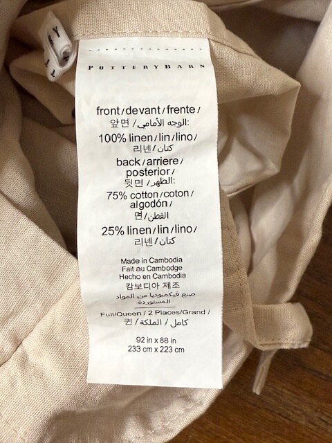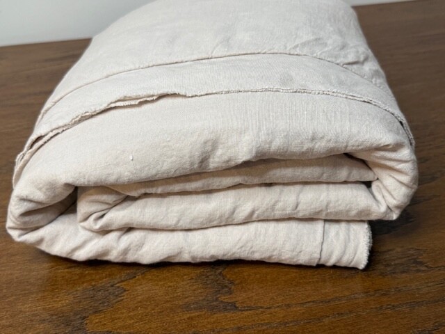 This linen bedding is prewashed for incredible softness–and only gets better with time. Lightly textured and cool to the touch, this natural fiber fabric is prized for its durability, breathability, and lived-in look. Linen woven from 100% Belgian flax; reverse is 75% cotton and 25% linen blend. Duvet features a hidden button closure with inner ties that keep the insert in place Machine wash in cold water separately on gentle cycle. Use only non-chlorine bleach, if needed. Line or tumble dry on a low temperature.