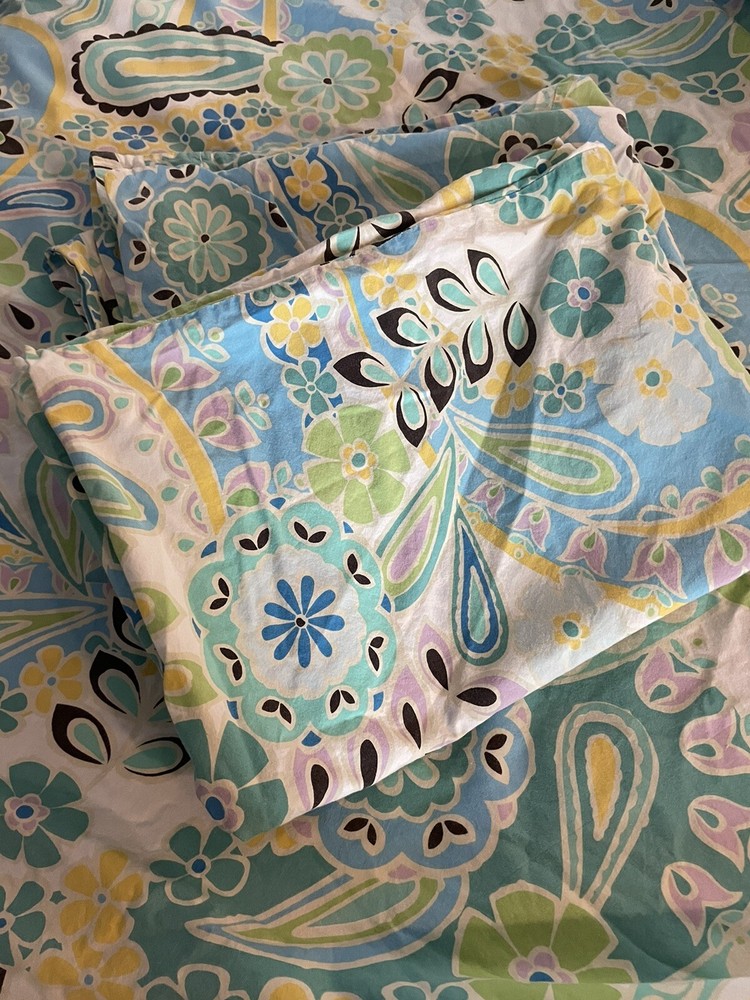 Here is a great paisley duvet from Pottery Barn. It is in excellent condition with no stains, rips, or holes. All buttons are intact. It comes with two matching standard shams.