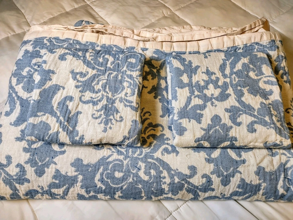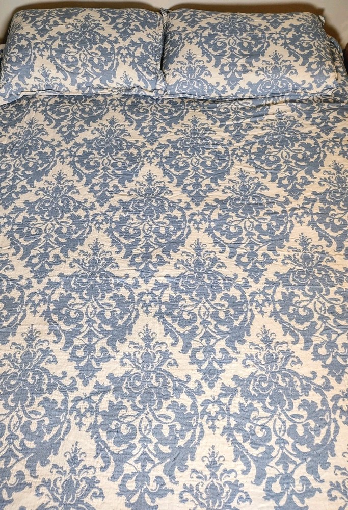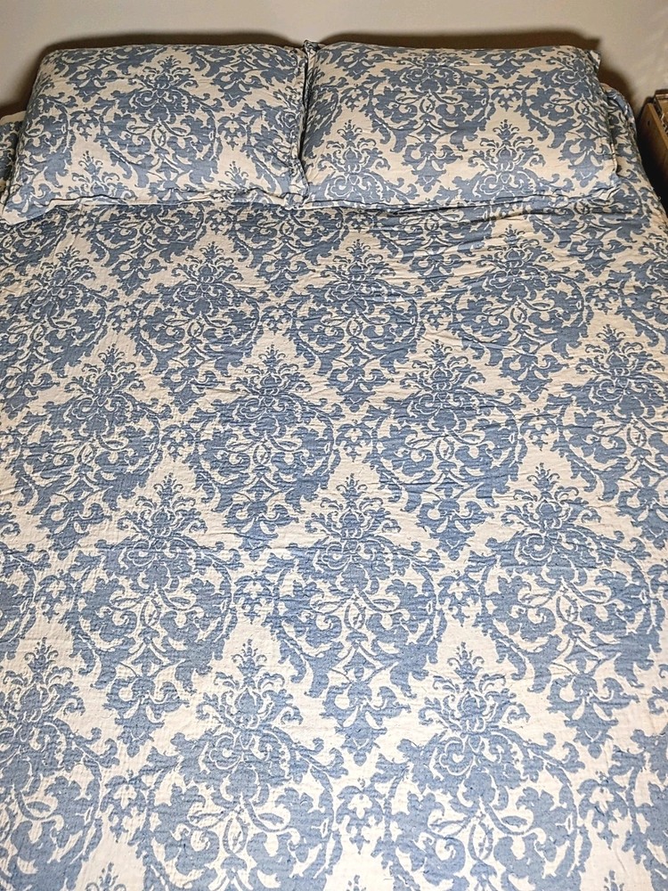 One duvet size Queen Two pillow Shams standard Cotton Machine washable *Reduced price because there are snags. Please see all pictures.