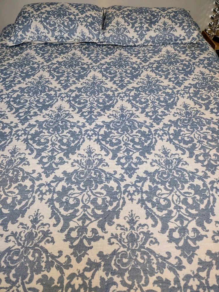 One duvet size Queen Two pillow Shams standard Cotton Machine washable *Reduced price because there are snags. Please see all pictures....