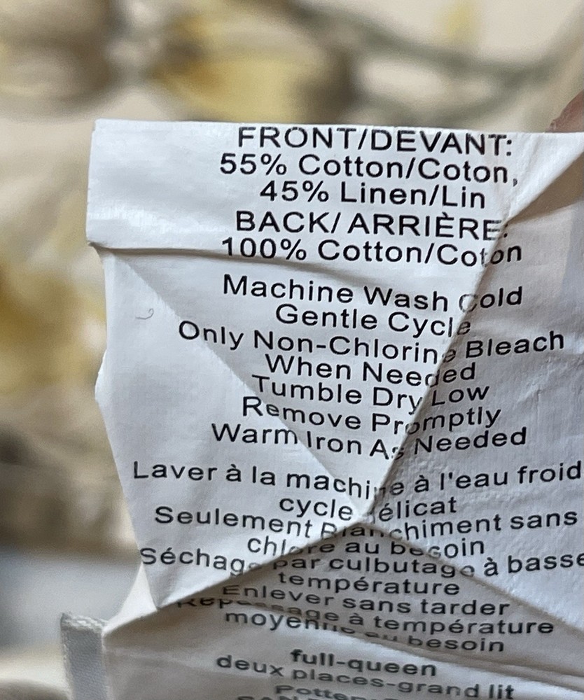 This has been recently dry, cleaned, and was only used for staging in a home ***** There is one mark on the backside please see photo This is for the duvet cover only and it is a full queen