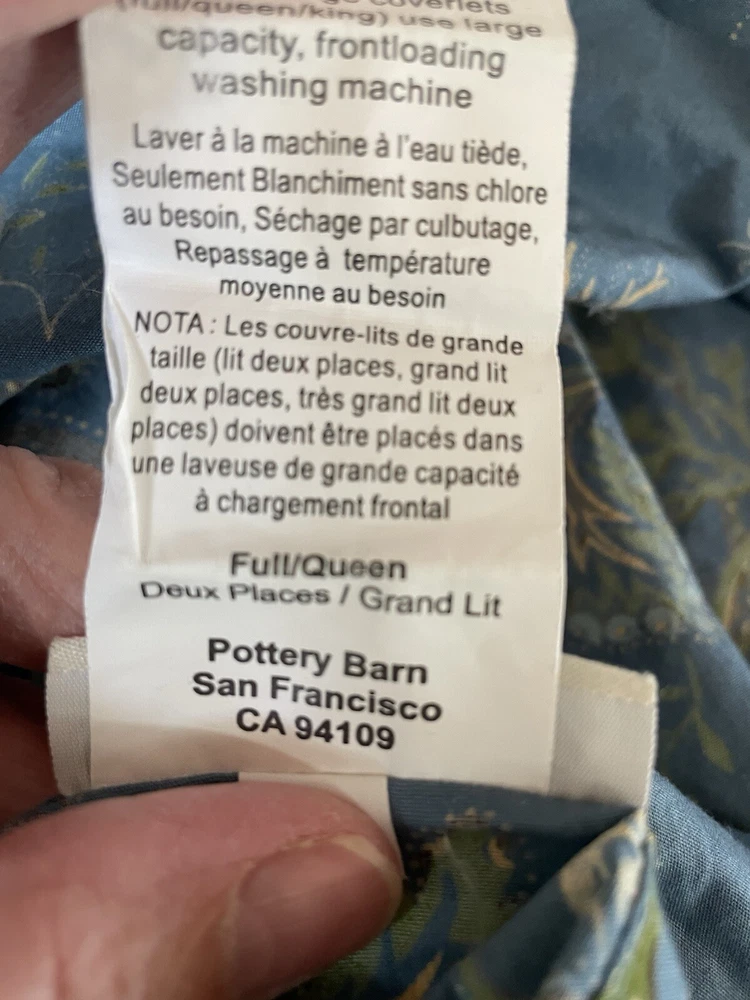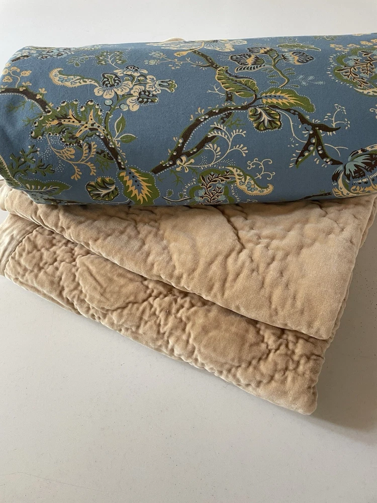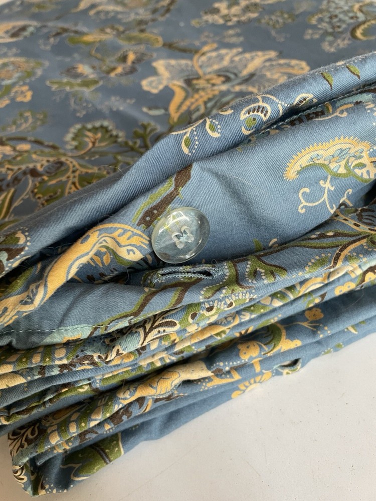 Pottery Barn Queen Duvet with 2 Quilted Velvet Euro Shams Jacobean Blue floral Button Closure All in Great PreOwned Condition!!! No rips, or stains...all buttons in tact Smoke Free Home