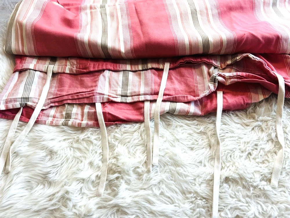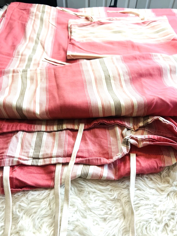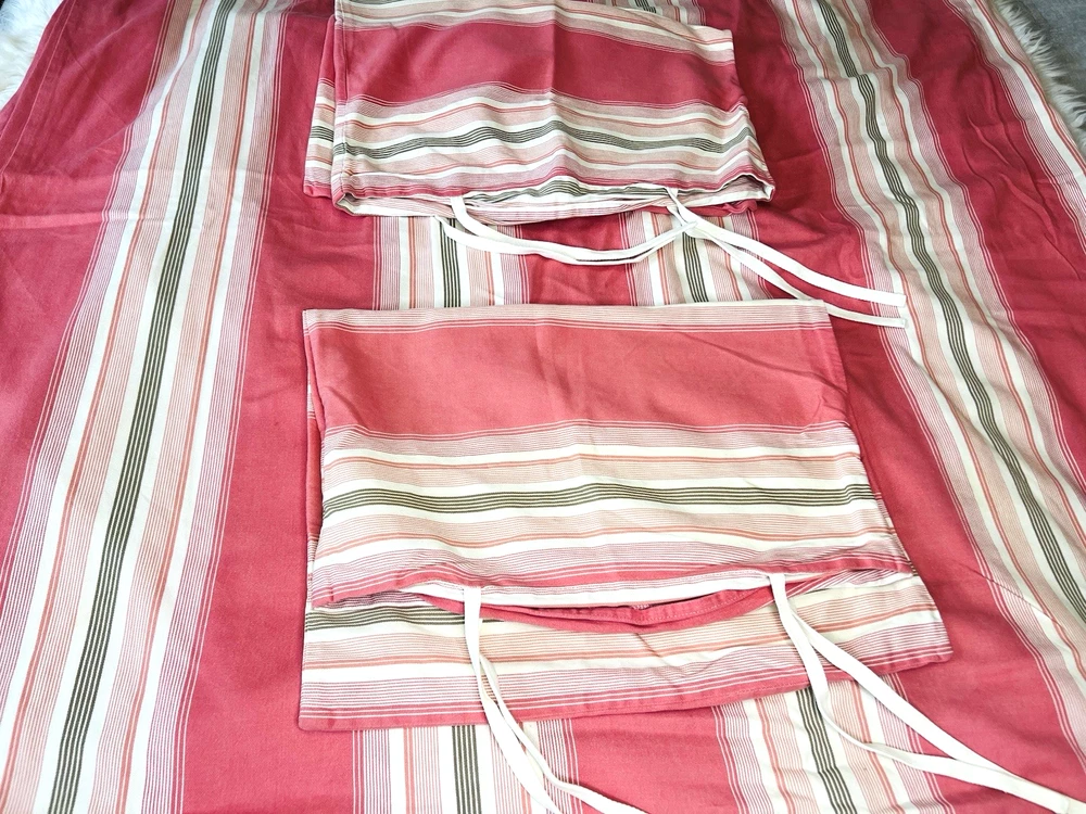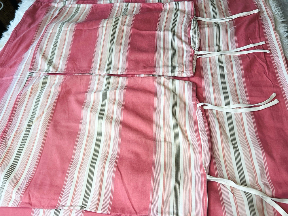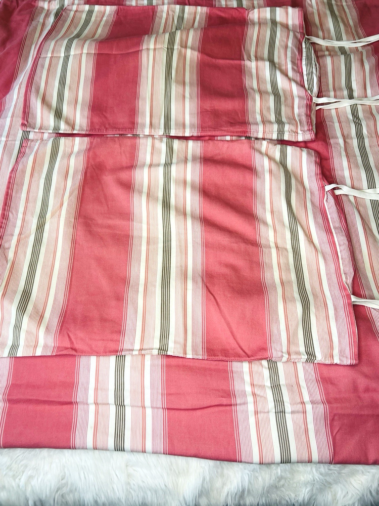 Beautiful Pottery Barn Queen Pink Duvet and 2 Pillowshams with ties 3 piece set Such a pretty color combination No marks stains etc See all pictures as part of description Clean smoke free home We ship everyday If shipping is less to you, I will refund the difference